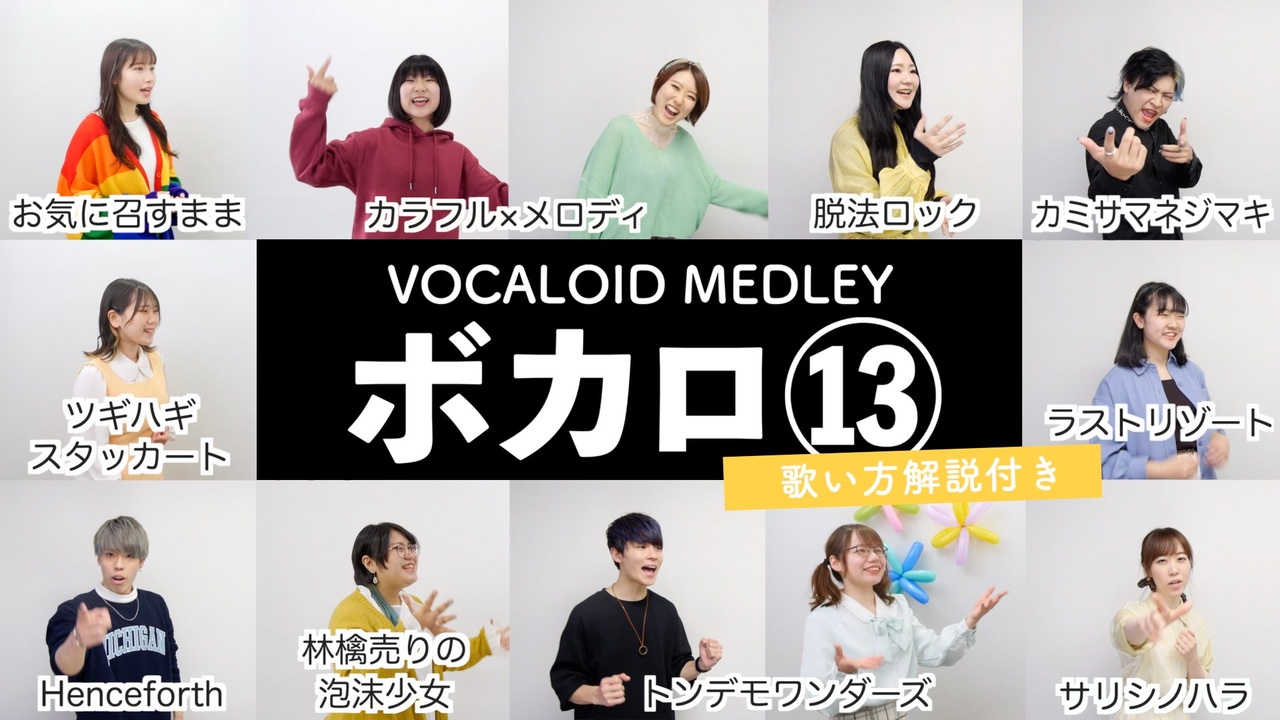 ◎シアーミュージックTiktok<br><a href="https://www.tiktok.com/@sheermusic.official" target="_blank" rel="noopener nofollow">https://www.tiktok.com/@sheermusic.official</a><br>◎シアーミュージックInstagram<br><a href="https://www.instagram.com/sheermusic.official/" target="_blank" rel="noopener nofollow">https://www.instagram.com/sheermusic.official/</a><br>◎シアーミュージックTwitter<br><a href="https://twitter.com/sheer_inc" target="_blank" rel="noopener nofollow">https://twitter.com/sheer_inc</a><br>◎シアーミュージックニコニコ動画<br><a href="https://ch.nicovideo.jp/sheer" target="_blank" rel="noopener nofollow">https://ch.nicovideo.jp/sheer</a><br><br>【タイムライン】<br>0:00 イントロ by 全員<br>0:03 カミサマネジマキ by 小寺貴裕<br>0:18 脱法ロック by 兼元夕見子<br>0:34 ラストリゾート by UKI<br>0:49 トンデモワンダーズ by Sii&たにし<br>1:14 林檎売りの泡沫少女 by ササキミク<br>1:40 ツギハギスタッカート by 瀬戸つかさ<br>2:09 サリシノハラ by みつなっく<br>2:37 お気に召すまま by 川野僚子<br>3:06 Henceforth by 快<br>3:36 カラフル×メロディ by 小林優奈&ひらななか<br>4:03 アウトロ by 全員<br>4:08 ご挨拶 by 全員<br><br>【出演シンガー】<br>1.カミサマネジマキ / 小寺貴裕(シアーミュージック高田馬場校ボイストレーナー)<br><a href="https://www.youtube.com/channel/UC_P8mKdwDS-YV-DoLM0blyA" target="_blank" rel="noopener nofollow">https://www.youtube.com/channel/UC_P8mKdwDS-YV-DoLM0blyA</a><br><a href="https://www.instagram.com/tqrozland/" target="_blank" rel="noopener nofollow">https://www.instagram.com/tqrozland/</a><br><a href="https://mobile.twitter.com/TqROnysan" target="_blank" rel="noopener nofollow">https://mobile.twitter.com/TqROnysan</a><br><br>2.脱法ロック / 兼元夕見子(シアーミュージック池袋校ボイストレーナー)<br><a href="https://www.youtube.com/channel/UC-ID6sZAsFfd8gZLlabolDA" target="_blank" rel="noopener nofollow">https://www.youtube.com/channel/UC-ID6sZAsFfd8gZLlabolDA</a><br><a href="https://twitter.com/you_miko1021" target="_blank" rel="noopener nofollow">https://twitter.com/you_miko1021</a><br><a href="https://www.instagram.com/accounts/login/?next=%2Fyou.miko1021%2F" target="_blank" rel="noopener nofollow">https://www.instagram.com/accounts/login/?next=%2Fyou.miko1021%2F</a><br><br>3.ラストリゾート / UKI(シアーミュージック秋葉原校生徒)<br><a href="https://www.youtube.com/channel/UCO3AtsK0SiP3YQfkPqx4ZMg" target="_blank" rel="noopener nofollow">https://www.youtube.com/channel/UCO3AtsK0SiP3YQfkPqx4ZMg</a><br><a href="https://instagram.com/uki_808.7" target="_blank" rel="noopener nofollow">https://instagram.com/uki_808.7</a><br><br>4.トンデモワンダーズ / Sii&たにし<br><br>Sii(シアーミュージック京都校生徒)<br><a href="https://www.youtube.com/channel/UCFDecHCOsqMwWvlg7Vi7UGA" target="_blank" rel="noopener nofollow">https://www.youtube.com/channel/UCFDecHCOsqMwWvlg7Vi7UGA</a><br><a href="https://twitter.com/SiimsiiS2256" target="_blank" rel="noopener nofollow">https://twitter.com/SiimsiiS2256</a><br><br>たにし(シアーミュージック千葉校生徒)<br><a href="https://youtube.com/channel/UCNSohpCKinhh0UHLzditf3w" target="_blank" rel="noopener nofollow">https://youtube.com/channel/UCNSohpCKinhh0UHLzditf3w</a><br><a href="https://twitter.com/tanishi_sing?s=11" target="_blank" rel="noopener nofollow">https://twitter.com/tanishi_sing?s=11</a><br><br>5.林檎売りの泡沫少女 / ササキミク(シアーミュージック札幌校ボイストレーナー)<br><a href="https://www.youtube.com/channel/UCluLC4vd8FY2eFQK-Zpfmfg" target="_blank" rel="noopener nofollow">https://www.youtube.com/channel/UCluLC4vd8FY2eFQK-Zpfmfg</a><br><a href="https://twitter.com/sasamijerky" target="_blank" rel="noopener nofollow">https://twitter.com/sasamijerky</a><br><a href="https://www.instagram.com/sasamijerky0812/" target="_blank" rel="noopener nofollow">https://www.instagram.com/sasamijerky0812/</a><br><br>6.ツギハギスタッカート / 瀬戸つかさ(シアーミュージック姫路校生徒)<br><a href="https://www.youtube.com/channel/UCSX4IVVmoNdv_eJLYH_ACdw" target="_blank" rel="noopener nofollow">https://www.youtube.com/channel/UCSX4IVVmoNdv_eJLYH_ACdw</a><br><a href="https://vt.tiktok.com/ZSJcBYrLN/" target="_blank" rel="noopener nofollow">https://vt.tiktok.com/ZSJcBYrLN/</a><br><a href="https://twitter.com/seto_2021" target="_blank" rel="noopener nofollow">https://twitter.com/seto_2021</a><br><br>7.サリシノハラ / みつなっく(シアーミュージック横浜校生徒)<br><a href="https://www.instagram.com/mtnc_white" target="_blank" rel="noopener nofollow">https://www.instagram.com/mtnc_white</a><br><a href="https://youtube.com/channel/UCustQpbEshPZg7uUrlv9Ewg" target="_blank" rel="noopener nofollow">https://youtube.com/channel/UCustQpbEshPZg7uUrlv9Ewg</a><br><a href="https://vt.tiktok.com/ZSdUxR1AP/" target="_blank" rel="noopener nofollow">https://vt.tiktok.com/ZSdUxR1AP/</a><br><br>8.お気に召すまま / 川野僚子(シアーミュージック天王寺校生徒)<br><br>9.Henceforth / 快(シアーミュージック秋葉原校生徒)<br><a href="https://lit.link/kai0920" target="_blank" rel="noopener nofollow">https://lit.link/kai0920</a><br><a href="https://youtube.com/channel/UCAkkKqn-fsHFuXyq8jmbdFg" target="_blank" rel="noopener nofollow">https://youtube.com/channel/UCAkkKqn-fsHFuXyq8jmbdFg</a><br><a href="https://twitter.com/kai_outa?t=5MCvgtml5Px0T8YFhKmIiQ&s=09" target="_blank" rel="noopener nofollow">https://twitter.com/kai_outa?t=5MCvgtml5Px0T8YFhKmIiQ&s=09</a><br><br>10.カラフル×メロディ / 小林優奈&ひらななか<br><br>ひらななか(シアーミュージック鹿児島校生徒)<br><a href="https://www.youtube.com/channel/UCRuULpGzpCc4Iipmo0KORxA" tar