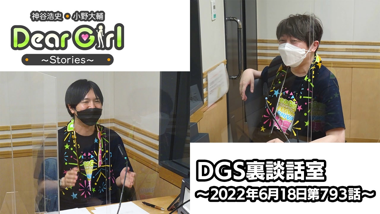 『神谷浩史・小野大輔のDear Girl〜Stories〜』<br>声優・神谷浩史、小野大輔がストーリーテラーとなってラジオの前のたった一人のアナタのために様々なストーリーをお届けするラジオプログラム。<br><br>こちらではDGS本編には収録されていない裏の談話室をお届けします。<br><br><br>▼『神谷浩史・小野大輔のDear Girl〜Stories〜』番組 15周年記念イベント<br>「Dear Girl〜Stories〜 Festival Carnival 15年祭」<br><開催日程><br>2022年6月4日(土) 5日(日) 神戸ワールド記念ホール<br>2022年7月2日(土) 3日(日) 横浜ぴあアリーナ MM<br><br>「Dear Girl〜Stories〜 Festival Carnival 15年祭」公式サイト<br><a href="https://joqrextend.co.jp/dgs15th/" target="_blank" rel="noopener nofollow">https://joqrextend.co.jp/dgs15th/</a><br><br>DGS15年祭の最終日となる7月3日公演(横浜・ぴあアリーナMM)の模様を<br>ニコニコ生放送にて有料生配信決定!<br>会場に来られないリスナーは、おうちからお祭りに参加してください!<br><br>●視聴ページURL<br><a href="https://live.nicovideo.jp/watch/lv337265905" target="_blank" rel="noopener nofollow">https://live.nicovideo.jp/watch/lv337265905</a><br><br>チケット価格:<br>5,324円(税込)(チケット価格4,840円(税込)+サービス手数料(10%)484円)<br>ニコニコプレミアム会員 または DGSチャンネル会員価格<br>4,598円(税込)(チケット価格4,180円(税込)+サービス手数料(10%)418円)<br><br>チケット販売期間:<br>2022年6月20日(月)12:00~7月18日(月)23:59<br>タイムシフト視聴期間:<br>2022年7月19日(火)23:59まで<br><br><br><br>・放送日時<br>文化放送 毎週(土)25時〜25時30分<br>ラジオ大阪 毎週(日)23時〜23時30分<br>インターネットサイマルラジオradikoでも聴取可能です。<br><br>・公式Twitter<br><a href="https://twitter.com/uchi_P_" target="_blank" rel="noopener nofollow">https://twitter.com/uchi_P_</a><br><br>・番組メールアドレス<br>dgs@joqr.net<br><br>・番組公式サイト<br><a href="https://pc.animelo.jp/special/deargirl-stories/" target="_blank" rel="noopener nofollow">https://pc.animelo.jp/special/deargirl-stories/</a><br>