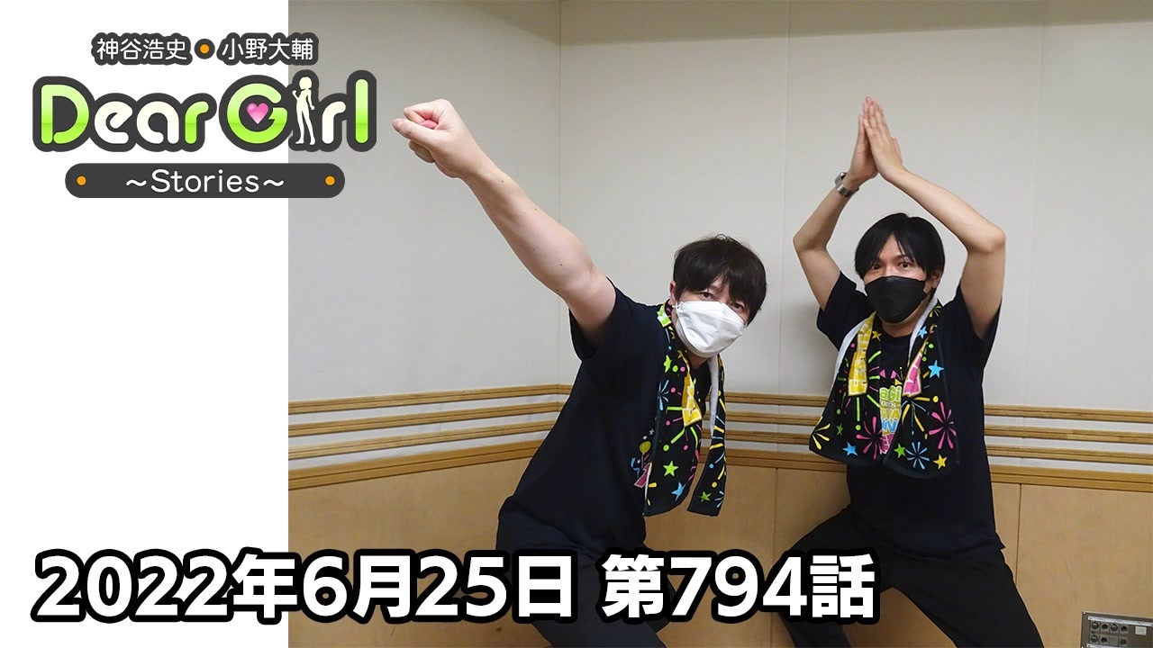 『神谷浩史・小野大輔のDear Girl〜Stories〜』<br>声優・神谷浩史、小野大輔がストーリーテラーとなってラジオの前のたった一人のアナタのために様々なストーリーをお届けするラジオプログラム。<br><br>こちらでは番組アーカイブを無料でお聴きいただけます。<br>今回は、2022年6月25日に文化放送で放送した第794話「今日はケツの話はしない」をお届けします。是非、最後までお聴きください。<br><br><br>----<br><br>▼『神谷浩史・小野大輔のDear Girl〜Stories〜』番組 15周年記念イベント<br>「Dear Girl〜Stories〜 Festival Carnival 15年祭」<br><開催日程><br>2022年6月4日(土) 5日(日) 神戸ワールド記念ホール<br>2022年7月2日(土) 3日(日) 横浜ぴあアリーナ MM<br><br>「Dear Girl〜Stories〜 Festival Carnival 15年祭」公式サイト<br><a href="https://joqrextend.co.jp/dgs15th/" target="_blank" rel="noopener nofollow">https://joqrextend.co.jp/dgs15th/</a><br><br>DGS15年祭の最終日となる7月3日公演(横浜・ぴあアリーナMM)の模様を<br>ニコニコ生放送にて有料生配信決定!<br>会場に来られないリスナーは、おうちからお祭りに参加してください!<br><br>●視聴ページURL<br><a href="https://live.nicovideo.jp/watch/lv337265905" target="_blank" rel="noopener nofollow">https://live.nicovideo.jp/watch/lv337265905</a><br><br>チケット価格:<br>5,324円(税込)(チケット価格4,840円(税込)+サービス手数料(10%)484円)<br>ニコニコプレミアム会員 または DGSチャンネル会員価格<br>4,598円(税込)(チケット価格4,180円(税込)+サービス手数料(10%)418円)<br><br>チケット販売期間:<br>2022年6月20日(月)12:00~7月18日(月)23:59<br>タイムシフト視聴期間:<br>2022年7月19日(火)23:59まで<br><br>----<br>【DGS15年祭 横浜公演 一般チケット販売】<br><br>2022年6月25日(土)10:00〜<br>※先着順で販売<br><br>■チケットぴあ<br><a href="https://w.pia.jp/t/dgs15/" target="_blank" rel="noopener nofollow">https://w.pia.jp/t/dgs15/</a><br>Pコード:648-278<br><br>■イープラス<br><a href="https://eplus.jp/deargirl/" target="_blank" rel="noopener nofollow">https://eplus.jp/deargirl/</a><br> <br>■ローチケ<br><a href="https://l-tike.com/dgs15th/" target="_blank" rel="noopener nofollow">https://l-tike.com/dgs15th/</a><br>Lコード:73394<br><br>----<br><br><br><br>番組では皆さんからのお便りお待ちしています。<br><br>・放送日時<br>文化放送 毎週(土)25時〜25時30分<br>ラジオ大阪 毎週(日)23時〜23時30分<br>インターネットサイマルラジオradikoでも聴取可能です。<br><br>・公式Twitter<br><a href="https://twitter.com/uchi_P_" target="_blank" rel="noopener nofollow">https://twitter.com/uchi_P_</a><br><br>・番組メールアドレス<br>dgs@joqr.net<br><br>・番組公式サイト<br><a href="https://pc.animelo.jp/special/deargirl-stories/" target="_blank" rel="noopener nofollow">https://pc.animelo.jp/special/deargirl-stories/</a><br>