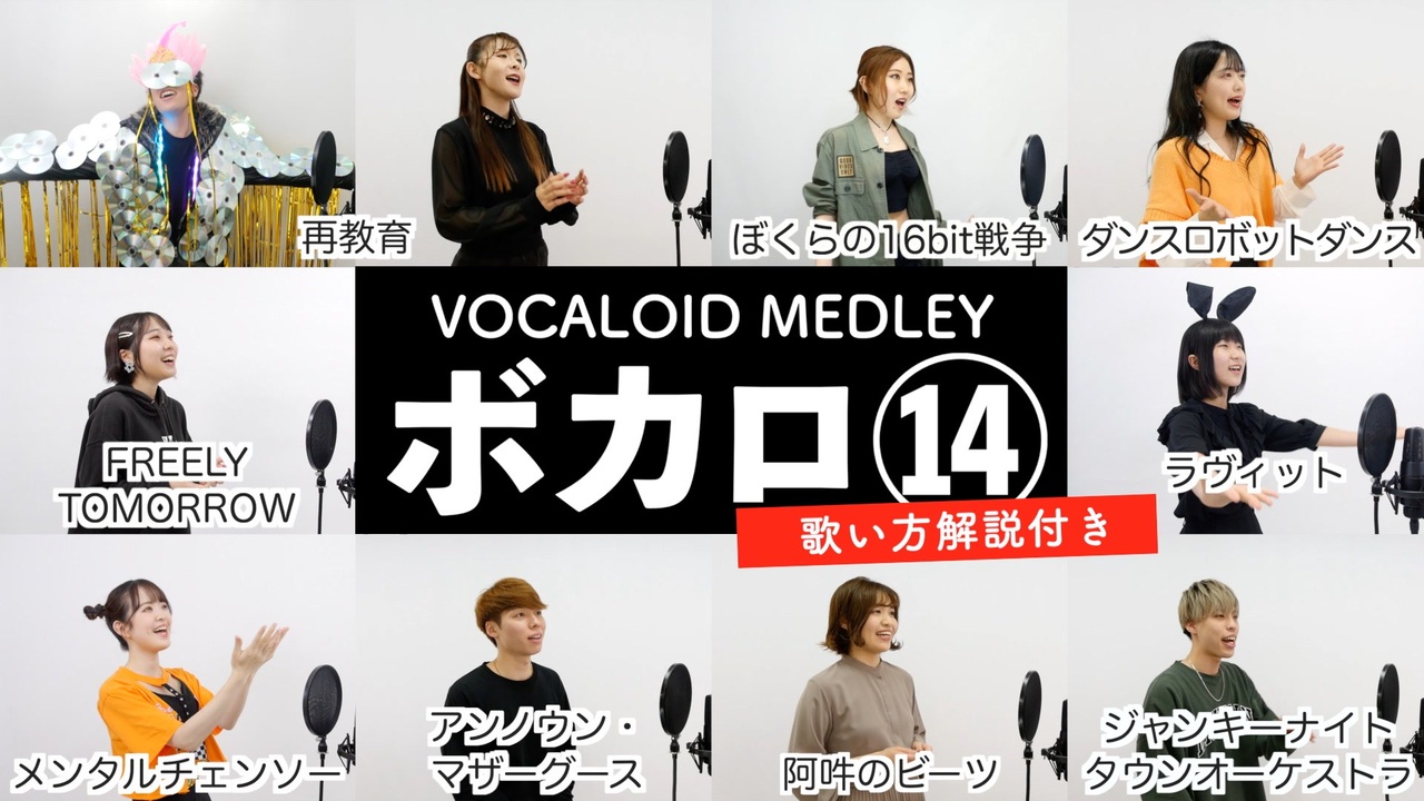 ◎シアーミュージックTiktok<br><a href="https://www.tiktok.com/@sheermusic.official" target="_blank" rel="noopener nofollow">https://www.tiktok.com/@sheermusic.official</a><br>◎シアーミュージックInstagram<br><a href="https://www.instagram.com/sheermusic.official/" target="_blank" rel="noopener nofollow">https://www.instagram.com/sheermusic.official/</a><br>◎シアーミュージックTwitter<br><a href="https://twitter.com/sheer_inc" target="_blank" rel="noopener nofollow">https://twitter.com/sheer_inc</a><br>◎シアーミュージックニコニコ動画<br><a href="https://ch.nicovideo.jp/sheer" target="_blank" rel="noopener nofollow">https://ch.nicovideo.jp/sheer</a><br><br>【タイムライン】<br>0:00 イントロ by 全員<br>0:05 ジャンキーナイトタウンオーケストラ by 快<br>0:25 ラヴィット by ひらななか<br>0:54 ぼくらの16bit戦争 by 小林優奈<br>1:25 再教育 by ひるまりな&大谷駿介<br>1:52 FREELY TOMORROW by すずな<br>2:26 阿吽のビーツ by もふた<br>2:45 アンノウン・マザーグース by 空<br>3:02 ダンスロボットダンス by 菜奈美<br>3:33 メンタルチェンソー by エマ<br>3:51 アウトロ by 全員<br>3:54 ご挨拶 by 全員<br><br>【出演シンガー】<br>1.ジャンキーナイトタウンオーケストラ / 快(シアーミュージック秋葉原校生徒)<br><a href="https://lit.link/kai0920" target="_blank" rel="noopener nofollow">https://lit.link/kai0920</a><br><a href="https://youtube.com/channel/UCAkkKqn-fsHFuXyq8jmbdFg" target="_blank" rel="noopener nofollow">https://youtube.com/channel/UCAkkKqn-fsHFuXyq8jmbdFg</a><br><a href="https://twitter.com/kai_outa?t=5MCvgtml5Px0T8YFhKmIiQ&s=09" target="_blank" rel="noopener nofollow">https://twitter.com/kai_outa?t=5MCvgtml5Px0T8YFhKmIiQ&s=09</a><br><br>2.ラヴィット / ひらななか(シアーミュージック鹿児島校生徒)<br><a href="https://www.youtube.com/channel/UCRuULpGzpCc4Iipmo0KORxA" target="_blank" rel="noopener nofollow">https://www.youtube.com/channel/UCRuULpGzpCc4Iipmo0KORxA</a><br><a href="https://twitter.com/Chick_4442?s=06" target="_blank" rel="noopener nofollow">https://twitter.com/Chick_4442?s=06</a><br><a href="https://www.instagram.com/Chi_ck44" target="_blank" rel="noopener nofollow">https://www.instagram.com/Chi_ck44</a><br><br>3.ぼくらの16bit戦争 / 小林優奈(シアーミュージック新宿校受付スタッフ)<br><a href="https://nana-music.com/users/623023" target="_blank" rel="noopener nofollow">https://nana-music.com/users/623023</a><br><a href="https://www.youtube.com/channel/UCirvC7c2KRXF_x3MoShBrow" target="_blank" rel="noopener nofollow">https://www.youtube.com/channel/UCirvC7c2KRXF_x3MoShBrow</a><br><br>4.再教育 / ひるまりな&大谷駿介<br><br>ひるまりな(シアーミュージック新宿校ボイストレーナー)<br><a href="https://www.instagram.com/hirumarina/" target="_blank" rel="noopener nofollow">https://www.instagram.com/hirumarina/</a><br><a href="https://mobile.twitter.com/narimaruhi" target="_blank" rel="noopener nofollow">https://mobile.twitter.com/narimaruhi</a><br><br>大谷駿介(シアーミュージック梅田校生徒)<br><a href="https://youtu.be/3O-O20YEMTE" target="_blank" rel="noopener nofollow">https://youtu.be/3O-O20YEMTE</a><br><a href="https://www.instagram.com/hernia_shunsuke/" target="_blank" rel="noopener nofollow">https://www.instagram.com/hernia_shunsuke/</a><br><a href="https://twitter.com/Hernia_so" target="_blank" rel="noopener nofollow">https://twitter.com/Hernia_so</a><br><br>5.FREELY TOMORROW / すずな(シアーミュージック札幌校生徒)<br><a href="https://twitter.com/shupon0073" target="_blank" rel="noopener nofollow">https://twitter.com/shupon0073</a><br><a href="https://www.youtube.com/channel/UCn-9r7JD-4yuS7tNVuRo_jA" target="_blank" rel="noopener nofollow">https://www.youtube.com/channel/UCn-9r7JD-4yuS7tNVuRo_jA</a><br><br>6.阿吽のビーツ / もふた(シアーミュージック大宮校生徒)<br><a href="https://www.youtube.com/channel/UCDIeYl40GpVHzgEG8Kd3sDQ" target="_blank" rel="noopener nofollow">https://www.youtube.com/channel/UCDIeYl40GpVHzgEG8Kd3sDQ</a><br><a href="https://www.instagram.com/__mofuta__/" target="_blank" rel="noopener nofollow">https://www.instagram.com/__mofuta__/</a><br><br>7.アンノウン・マザーグース / 空(シアーミュージック秋葉原校生徒)<br><a href="https://www.youtube.com/channel/UCQXjaWn5pB99I8LSG-9flHA" target="_blank" rel="noopener nofollow">https://www.youtube.com/channel/UCQXjaWn5pB99I8LSG-9flHA</a><br><a href="https://www.instagram.com/sora___heritage/" target="_blank" rel="noopener nofollow">https://www.instagram.com/sora___heritage/</a><br><a href="https://twitter.com/sora___heritage" target="_blank" rel="noopener nofollow">https://twitter.com/sora___heritage</a><br><br>8.ダンスロボットダンス / 菜奈美(シアーミュージック横浜校生徒)<br><a href="https://twitter.com/nanamin_020630" target="_blank" rel="noopener nofollow">https://twitter.com/nanamin_020630</a><br><a href="https://www.instagram.com/nanamin_020630" target="_blank" rel="noopener nofollow">https://www.instagram.com/nanamin_020630</a><br><br>9.メンタルチェンソー / エマ(シアーミュージック札幌校生徒)<br><a href="https://www.youtube.com/channel/UCVe-gDdF0FNj9e_dXrI7A-Q" target="_blank" rel="noopener nofollow">https://www.youtube.com/channel/UCVe-gDdF0FNj9e_dXrI7A-Q</a><br><a href="https://www.instagram.com/emmawow0602/" target="_blank" rel="noopener nofollow">https://www.instagram.com/emmawow0602/</a><br><a href="https://www.tiktok.com/@emma_sapporo1" target="_blank" rel="noopener nofollow">https://www.tiktok.com/@emma_sapporo1</a><br><br>Voice Trainer's Comment監修:多田亘佑<br>音源制作:残響レコード<br><a href="https://zankyo.co.jp/" target="_blank" rel="noopener nofollow">https://zankyo.co.jp/</a><br><br>【本