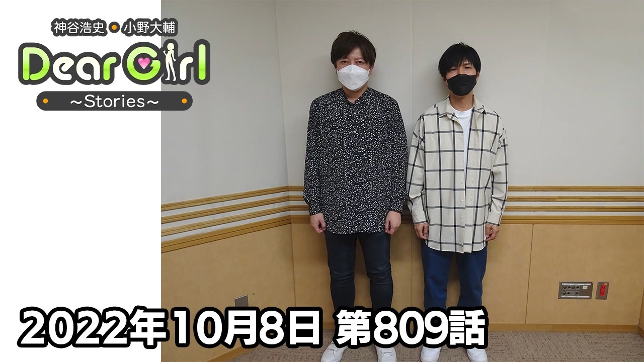 『神谷浩史・小野大輔のDear Girl〜Stories〜』<br>声優・神谷浩史、小野大輔がストーリーテラーとなってラジオの前のたった一人のアナタのために様々なストーリーをお届けするラジオプログラム。<br><br>こちらでは番組アーカイブを無料でお聴きいただけます。<br>今回は、2022年10月8日に文化放送で放送した第809話「ねえもうこんな時間だよ?」をお届けします。是非、最後までお聴きください。<br><br>----<br><br>文化放送エクステンド会社設立10周年を記念したイベント「エクステンドフェス」の開催が決定!<br><br>2022/11/19(土) 13:00 開演 ( 12:00 開場 )<br>会場:中野サンプラザ (東京都)<br>出演:神谷浩史 / 小野大輔 / 内山昂輝 / 石川界人<br>「エクステンドフェス」公式サイト:<a href="https://joqrextend.co.jp/extend10th/" target="_blank" rel="noopener nofollow">https://joqrextend.co.jp/extend10th/</a><br>----<br><br><br>番組では皆さんからのお便りお待ちしています。<br><br>・放送日時<br>文化放送 毎週(土)25時〜25時30分<br>ラジオ大阪 毎週(日)23時〜23時30分<br>インターネットサイマルラジオradikoでも聴取可能です。<br><br>・公式Twitter<br><a href="https://twitter.com/uchi_P_" target="_blank" rel="noopener nofollow">https://twitter.com/uchi_P_</a><br><br>・番組メールアドレス<br>dgs@joqr.net<br><br>・番組公式サイト<br><a href="https://pc.animelo.jp/special/deargirl-stories/" target="_blank" rel="noopener nofollow">https://pc.animelo.jp/special/deargirl-stories/</a><br>