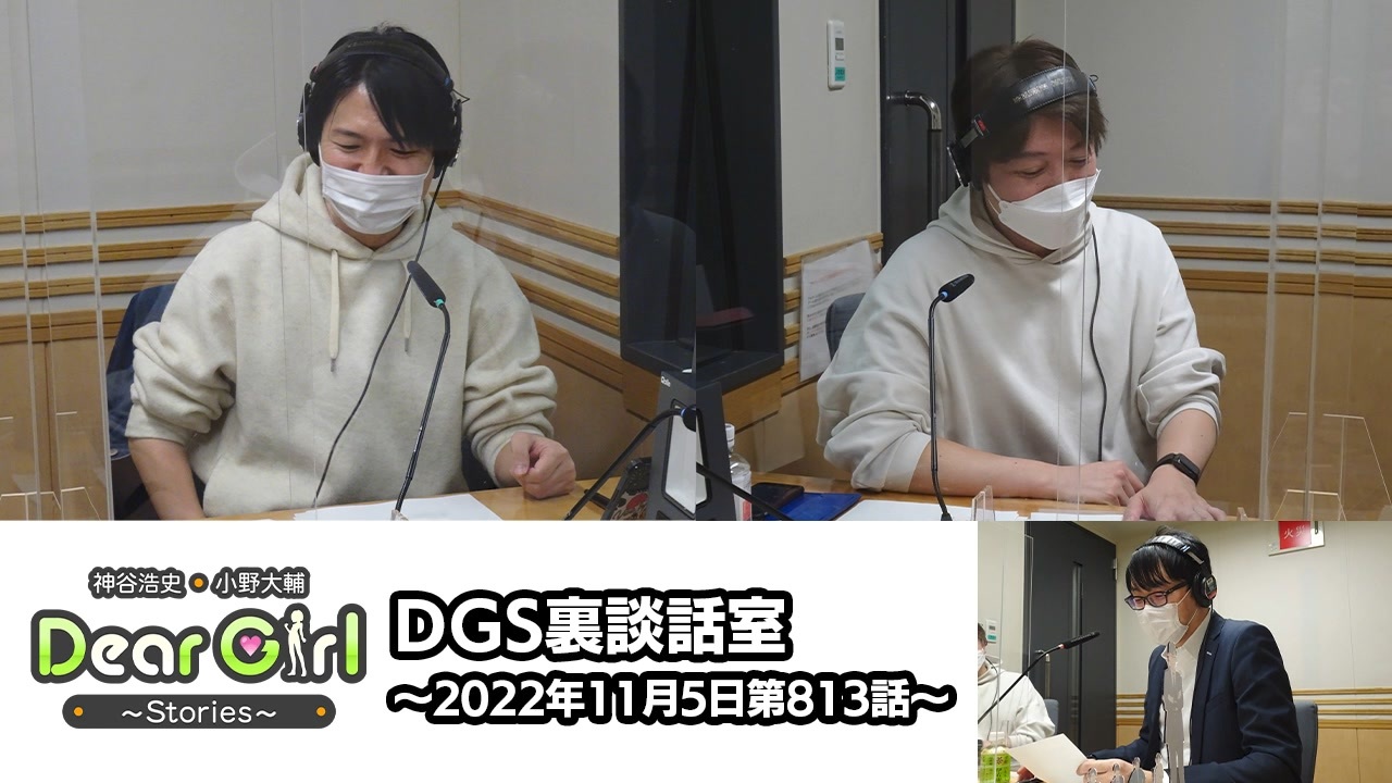 『神谷浩史・小野大輔のDear Girl〜Stories〜』<br>声優・神谷浩史、小野大輔がストーリーテラーとなってラジオの前のたった一人のアナタのために様々なストーリーをお届けするラジオプログラム。<br><br>こちらではDGS本編には収録されていない裏の談話室をお届けします。<br><br>----<br><br>文化放送エクステンド会社設立10周年を記念したイベント「エクステンドフェス」有料生配信の視聴チケットが好評発売中!<br><br>●ニコニコ生放送 <a href="https://live.nicovideo.jp/watch/lv338980065" target="_blank" rel="noopener nofollow">https://live.nicovideo.jp/watch/lv338980065</a><br><br>視聴チケット:税別3,600円(税込3,960円)<br>※別途手数料はお客様負担となります。<br><br>アーカイブ配信:2022年11月28日(月)まで視聴可能<br><br>「エクステンドフェス」<br>2022/11/19(土) 13:00 開演 ( 12:00 開場 )<br>出演:神谷浩史 / 小野大輔 / 内山昂輝 / 石川界人<br>「エクステンドフェス」公式サイト:<a href="https://joqrextend.co.jp/extend10th/" target="_blank" rel="noopener nofollow">https://joqrextend.co.jp/extend10th/</a><br><br>----<br><br>11月19日エクステンドフェス終了後「神谷浩史・小野大輔のDearGirl〜Stories」の番組スタッフオンリーイベント「DGSスピンオフ会」を開催!<br><br><公演概要><br>タイトル:DGSスピンオフ会<br>会場:中野サンプラザホール<br>時間:16時30分開場、17時30分開演、19時30分終演(予定)<br>出演:内田浩之、諏訪勝、八木橋淳、小林ちゃんこ、高垣雄海 、<br>横川涼、伊藤晃央、竹内彰廣 and more<br>チケット:税別3500円(税込3850円)<br>チケットプレリザーブを実施中!<br>受付URL:<a href="https://w.pia.jp/t/extendnight/" target="_blank" rel="noopener nofollow">https://w.pia.jp/t/extendnight/</a><br><br>「DGSスピンオフ会」ニコニコ生放送 有料生配信 視聴チケットも好評発売中!<br><a href="https://live.nicovideo.jp/watch/lv339060654" target="_blank" rel="noopener nofollow">https://live.nicovideo.jp/watch/lv339060654</a><br>視聴チケット:税別2,500円(税込2,750円)<br>※別途手数料はお客様負担となります。<br>アーカイブ配信:2022年11月28日(月)まで視聴可能<br>----<br><br><br>・放送日時<br>文化放送 毎週(土)25時〜25時30分<br>ラジオ大阪 毎週(日)23時〜23時30分<br>インターネットサイマルラジオradikoでも聴取可能です。<br><br>・公式Twitter<br><a href="https://twitter.com/uchi_P_" target="_blank" rel="noopener nofollow">https://twitter.com/uchi_P_</a><br><br>・番組メールアドレス<br>dgs@joqr.net<br><br>・番組公式サイト<br><a href="https://pc.animelo.jp/special/deargirl-stories/" target="_blank" rel="noopener nofollow">https://pc.animelo.jp/special/deargirl-stories/</a><br>