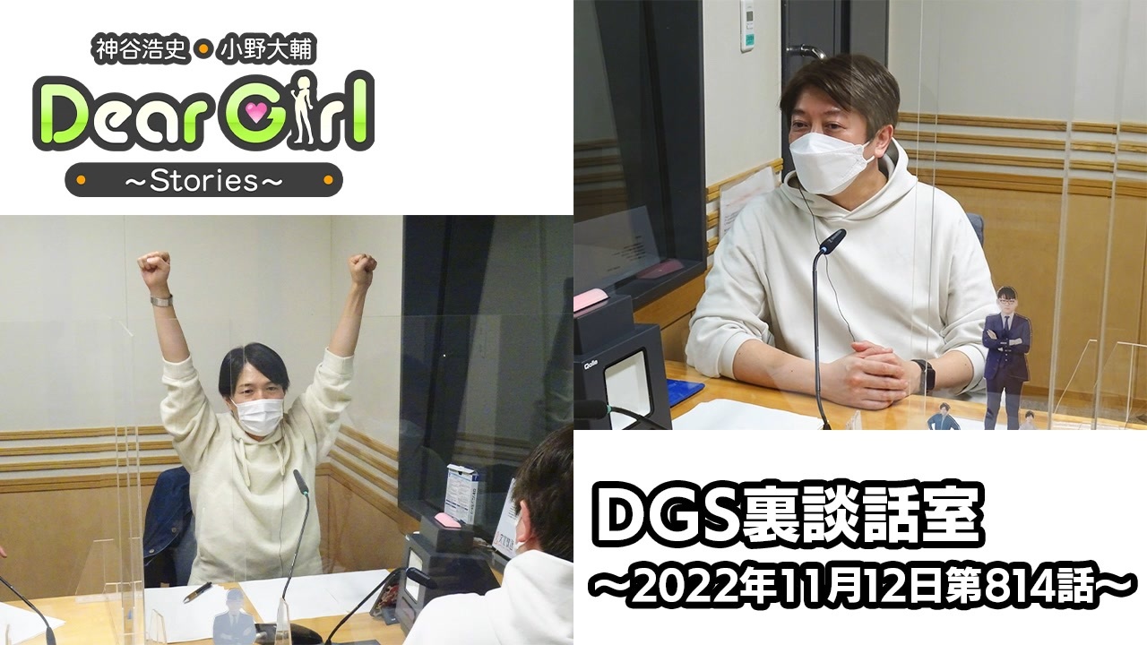 『神谷浩史・小野大輔のDear Girl〜Stories〜』<br>声優・神谷浩史、小野大輔がストーリーテラーとなってラジオの前のたった一人のアナタのために様々なストーリーをお届けするラジオプログラム。<br><br>こちらではDGS本編には収録されていない裏の談話室をお届けします。<br><br>----<br><br>文化放送エクステンド会社設立10周年を記念したイベント「エクステンドフェス」有料生配信の視聴チケットが好評発売中!<br><br>●ニコニコ生放送 <a href="https://live.nicovideo.jp/watch/lv338980065" target="_blank" rel="noopener nofollow">https://live.nicovideo.jp/watch/lv338980065</a><br><br>視聴チケット:税別3,600円(税込3,960円)<br>※別途手数料はお客様負担となります。<br><br>アーカイブ配信:2022年11月28日(月)まで視聴可能<br><br>「エクステンドフェス」<br>2022/11/19(土) 13:00 開演 ( 12:00 開場 )<br>出演:神谷浩史 / 小野大輔 / 内山昂輝 / 石川界人<br>「エクステンドフェス」公式サイト:<a href="https://joqrextend.co.jp/extend10th/" target="_blank" rel="noopener nofollow">https://joqrextend.co.jp/extend10th/</a><br><br>----<br><br>11月19日エクステンドフェス終了後「神谷浩史・小野大輔のDearGirl〜Stories」の番組スタッフオンリーイベント「DGSスピンオフ会」を開催!<br><br><公演概要><br>タイトル:DGSスピンオフ会<br>会場:中野サンプラザホール<br>時間:16時30分開場、17時30分開演、19時30分終演(予定)<br>出演:内田浩之、諏訪勝、八木橋淳、小林ちゃんこ、高垣雄海 、<br>横川涼、伊藤晃央、竹内彰廣 and more<br>チケット:税別3500円(税込3850円)<br>チケットプレリザーブを実施中!<br>受付URL:<a href="https://w.pia.jp/t/extendnight/" target="_blank" rel="noopener nofollow">https://w.pia.jp/t/extendnight/</a><br><br>「DGSスピンオフ会」ニコニコ生放送 有料生配信 視聴チケットも好評発売中!<br><a href="https://live.nicovideo.jp/watch/lv339060654" target="_blank" rel="noopener nofollow">https://live.nicovideo.jp/watch/lv339060654</a><br>視聴チケット:税別2,500円(税込2,750円)<br>※別途手数料はお客様負担となります。<br>アーカイブ配信:2022年11月28日(月)まで視聴可能<br>----<br><br><br>・放送日時<br>文化放送 毎週(土)25時〜25時30分<br>ラジオ大阪 毎週(日)23時〜23時30分<br>インターネットサイマルラジオradikoでも聴取可能です。<br><br>・公式Twitter<br><a href="https://twitter.com/uchi_P_" target="_blank" rel="noopener nofollow">https://twitter.com/uchi_P_</a><br><br>・番組メールアドレス<br>dgs@joqr.net<br><br>・番組公式サイト<br><a href="https://pc.animelo.jp/special/deargirl-stories/" target="_blank" rel="noopener nofollow">https://pc.animelo.jp/special/deargirl-stories/</a><br>