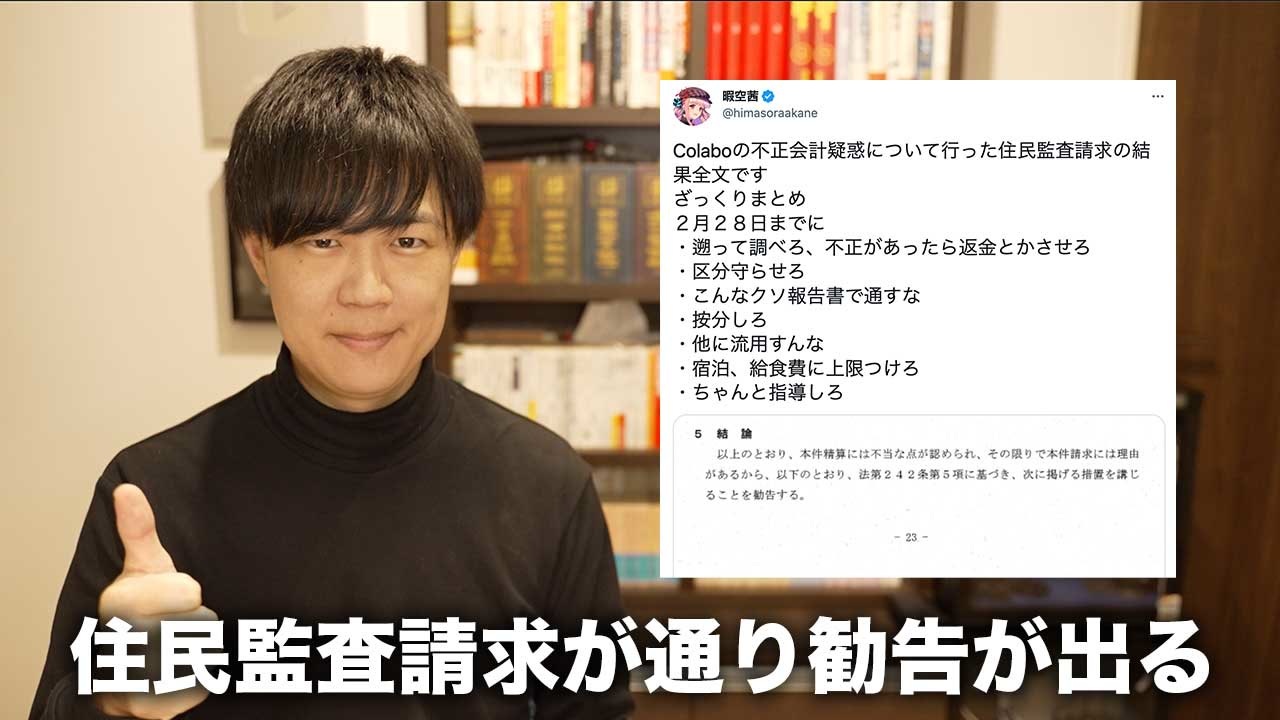 Colabo住民監査請求結果全文とその解説→<a href="https://note.com/hima_kuuhaku/n/nc5c5c16e4669" target="_blank" rel="noopener nofollow">https://note.com/hima_kuuhaku/n/nc5c5c16e4669</a><br><br>チャンネル登録お願いします→<a href="http://www.youtube.com/user/kazuyahkd" target="_blank" rel="noopener nofollow">http://www.youtube.com/user/kazuyahkd</a><br><br>Twitter→<a href="https://twitter.com/kazuyahkd2" target="_blank" rel="noopener nofollow">https://twitter.com/kazuyahkd2</a><br>インスタ→<a href="https://www.instagram.com/kazuya.hkd/" target="_blank" rel="noopener nofollow">https://www.instagram.com/kazuya.hkd/</a><br>マイリス→<a href="https://www.nicovideo.jp/mylist/36734521" target="_blank" rel="noopener">mylist/36734521</a>
