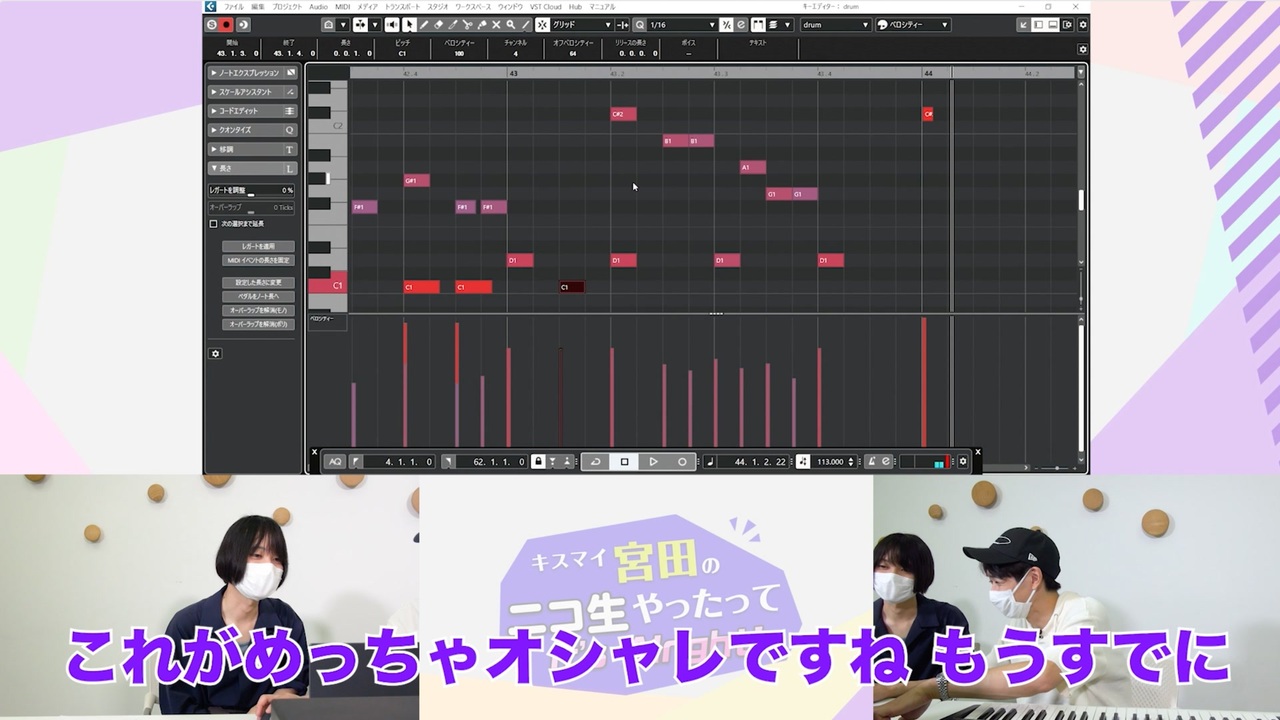 <br>゜+.――゜+.――゜+.――゜+.――゜+.――゜+.――゜+.――゜+.――゜+<br><br><strong>宮田ニキ</strong>でお馴染み!<br><strong>Kis-My-Ft2 宮田俊哉さん</strong>の月1ニコ生冠番組<br>「<span style="color: #9900ff;">キスマイ宮田のニコ生やったってit’s Alright!</span>」の企画としてお届けした<br><span style="color: #ff0000;">「VOCALOIDで楽曲制作シリーズ」</span>をお届け!<br><br>゜+.――゜+.――゜+.――゜+.――゜+.――゜+.――゜+.――゜+.――゜+<br><br>╭━━━━━━━━━━━╮<br> <strong><i>ボカロで楽曲制作!</i></strong><br>╰━━v━━━━━━━━╯<br><br>Kis-My-Ft2 宮田俊哉さんが<span style="color: #ff0000;">『ボカコレ2022秋』に初参加!</span><br>楽曲制作の過程をお届けしていきます!<br><br>今回は、大サビのドラムを打ち込んでいきます!♪<br><br><strong><a href="https://www.nicovideo.jp/watch/so41632621" target="_blank">#</a></strong><a href="https://www.nicovideo.jp/watch/so41632621" target="_blank">7</a><strong> ← 前 次 → 準備中</strong><br><br><span style="color: #9900ff;"><strong>◆投稿楽曲紹介</strong></span><br>< 鏡鳴 >( <a href="https://www.nicovideo.jp/watch/sm41183626" target="_blank">sm41183626</a> )<br> ・music&lyric:あんみつ<br> ・vocal:初音ミク<br> ・illust:九駄礁太( <a href="https://twitter.com/9da_sho" target="_blank">https://twitter.com/9da_sho</a> )<br> ・movie:NABECHANG( <a href="https://twitter.com/na_nabechang" target="_blank">https://twitter.com/na_nabechang</a> )<br><br><span style="color: #ff9900;"><strong>◆Special Thanks</strong></span><br> ●40mP 様<br> 公式サイト:<a href="https://www.40mp-official.com/" target="_blank">https://www.40mp-official.com/</a><br> Twitter:<a href="https://twitter.com/40mp" target="_blank">https://twitter.com/40mP</a><br><br>-----------------------------------------------------------------------------<br><br><span style="color: #c27ba0; font-size: 16px;"><strong><u>\\キスマイ宮田のニコ生やったってit’s Alright! //</u></strong></span><br><br>“あの頃”の気持ちに戻ってこれをやりたい!<br>“いま”気になっているあれについて知りたい! など...<br>Kis-My-Ft2宮田俊哉さんが視聴者の皆さんと一緒に、<br>色々なことを楽しみながら叶えていく青春タイムリープ系番組!<br>毎月1回、ニコニコ生放送にて絶賛放送中!( ´ ▽ ` )<br><br><span style="color: #9900ff;"><strong>◆リンク</strong></span><br> ●Twitter:<a href="https://twitter.com/kismiya_2525" target="_blank">https://twitter.com/kismiya_2525</a><br> ●番組ポータルページ:<a href="https://ch.nicovideo.jp/kmf2-miyata-ch" target="_blank">https://ch.nicovideo.jp/kmf2-miyata-ch</a><br><br>-------------------------------------------------------------------------------<br>