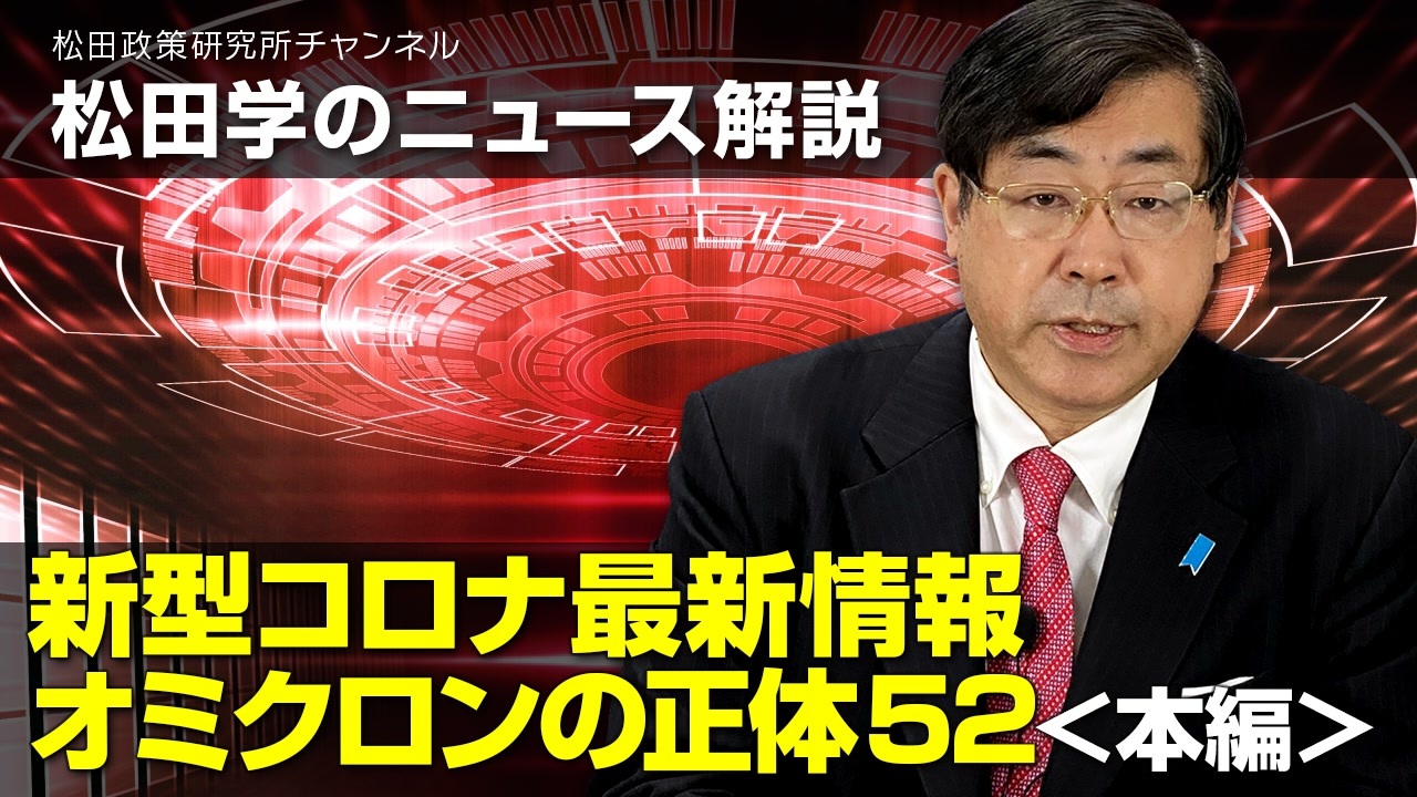 松田学のニュース解説 新型コロナ最新情報<br>オミクロンの正体52<本編><br><br>解説:松田政策研究所 代表 松田学<br><br>【1/26配信 よろず~】<br>*参政党・松田学代表<br> コロナ「5類」評価も政府に苦言「こんな異常なことが日本で起こっていたのか」<br> ↓<br><a href="https://news.yahoo.co.jp/articles/f65d1b298d44129f019e2b11e646ce7b39c8df8c?fbclid=IwAR3rG0vg10mgNJMFgsbQiQ6FsjifNZoh6We46a8T7Q6Miz8Z1g2CvB9NCys" target="_blank" rel="noopener nofollow">https://news.yahoo.co.jp/articles/f65d1b298d44129f019e2b11e646ce7b39c8df8c?fbclid=IwAR3rG0vg10mgNJMFgsbQiQ6FsjifNZoh6We46a8T7Q6Miz8Z1g2CvB9NCys</a><br><br>◆参政党の新型コロナ・ワクチン政策【2022年10月改訂】<br> <a href="https://www.sanseito.jp/news/5105/" target="_blank" rel="noopener nofollow">https://www.sanseito.jp/news/5105/</a><br><br>5/12更新 参政党ワクチン政策<br><a href="https://www.sanseito.jp/news/4376/" target="_blank" rel="noopener nofollow">https://www.sanseito.jp/news/4376/</a><br>子どものマスクとワクチンに反対する「意見広告2nd」<br><a href="https://jcovid.net/ad2022project05/" target="_blank" rel="noopener nofollow">https://jcovid.net/ad2022project05/</a><br><br><チャンネル登録お願いいたします><br><a href="http://www.youtube.com/channel/UCAN0E9cZN7n22Ka1-TuVb-Q?sub_confirmation=1" target="_blank" rel="noopener nofollow">http://www.youtube.com/channel/UCAN0E9cZN7n22Ka1-TuVb-Q?sub_confirmation=1</a><br><セカンドチャンネルはこちら><br><a href="https://www.youtube.com/channel/UCUdALlTFAabnQpu_IykDT_g" target="_blank" rel="noopener nofollow">https://www.youtube.com/channel/UCUdALlTFAabnQpu_IykDT_g</a><br><松田政策研究所 ニコニコチャンネル 一部有料 月額550円><br><a href="https://ch.nicovideo.jp/matsuda-pi" target="_blank" rel="noopener nofollow">https://ch.nicovideo.jp/matsuda-pi</a><br><br>松田学公式ホームページ<br><a href="https://matsuda-manabu.jp/" target="_blank" rel="noopener nofollow">https://matsuda-manabu.jp/</a><br>松田政策研究所FB<br><a href="https://www.facebook.com/matsudaseisaku/" target="_blank" rel="noopener nofollow">https://www.facebook.com/matsudaseisaku/</a><br>無料メルマガはこちら*バックナンバーあり<br><a href="http://matsuda-manabu.jp/e-zine/" target="_blank" rel="noopener nofollow">http://matsuda-manabu.jp/e-zine/</a>