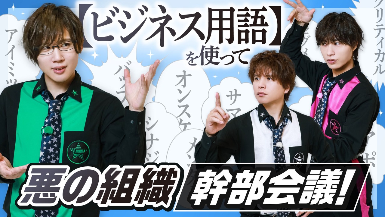 【GOALOUS5 ニコニコ動画支部】<br>新社会人必見!?ビジネス用語を使った会議再び!(第201回)<br><br>★GOALOUS5『声福大作戦〜祝★三周年!進めゴーラス!〜』『声福大作戦 ~LIVE & READING~』Blu-ray 2023年5月18日同時発売!<br>予約受付中!<br><br>①販売店情報<br><GCRESTORE(ジークレストア)><br><a href="https://gcrest.store/collections/goalous5" target="_blank" rel="noopener nofollow">https://gcrest.store/collections/goalous5</a><br><アニメイト(通販含む)><br><a href="https://www.animate-onlineshop.jp/pn/pd/2232907/" target="_blank" rel="noopener nofollow">https://www.animate-onlineshop.jp/pn/pd/2232907/</a><br><br>②各商品情報とダイジェスト<br>『声福大作戦〜祝★三周年!進めゴーラス!〜』<br><a href="https://youtu.be/VDnDTccWKq8" target="_blank" rel="noopener nofollow">https://youtu.be/VDnDTccWKq8</a><br>『声福大作戦 ~LIVE & READING~』<br><a href="https://youtu.be/cwDNdGwUIqQ" target="_blank" rel="noopener nofollow">https://youtu.be/cwDNdGwUIqQ</a><br><br>③同時購入特典<br>『声福大作戦〜祝★三周年!進めゴーラス!〜』と『声福大作戦 ~LIVE & READING~』Blu-rayを同時購入でM∞CARD(悪のスペシャルトーク収録)をお渡しします!<br>オーコメ収録後のGOALOUS5の感想などトークを収録!(約18分)<br>※内容はジークレストア、アニメイト共通となります<br>※特典はなくなり次第終了となります<br><br>★テーマソングCD第4弾「Get set, 5!」発売中!<br>①販売店情報<br><GCRESTORE(ジークレストア)><br><a href="https://gcrest.store/collections/goalous5" target="_blank" rel="noopener nofollow">https://gcrest.store/collections/goalous5</a><br><アニメイト(通販含む全店舗)><br>※店舗別購入特典もあります<br><br>②収録内容<br>【MV盤(CD +Blu-ray)】<br><収録曲><br>01:Get set, 5!<br>02:GOALOUS Festa<br>03:Get set, 5!(Instrumental)<br>04:GOALOUS Festa(Instrumental)<br><br><Blu-ray映像収録内容><br>01:Get set, 5! Music video<br>02:Making<br>03:Trailer<br>GCGC-0015/¥2,640円(税込)【数量限定ゴーラス盤】<br>MV盤(CD +Blu-ray)+限定特典(アナザージャケットアクリルパネル)<br>MV盤と収録内容は共通です。<br>¥4,400円(税込)<br>※ジークレストア限定商品です<br><br>③店舗別購入特典<br>GCRESTORE(ジークレストア):複製直筆コメント入り2L判ブロマイド<br>アニメイトオンライン:L判ブロマイド<br><br>★MISSION:GO5 ボイスドラマVol.03「好敵手ニ勝利セヨ!」<br>ジークレストアで発売中!<br>ボイスドラマと新規楽曲「Ultimate Five!」も収録!<br><br>①CD<br><a href="https://gcrest.store/collections/goalous5/products/gcp20220096g5" target="_blank" rel="noopener nofollow">https://gcrest.store/collections/goalous5/products/gcp20220096g5</a><br>購入者特典:<br>音声特典ボイスカード(全7種/ランダム)<br>各キャラクターの戦闘訓練バディボイスが収録されています!<br><br>②コンプリートセット(数量限定)<br><a href="https://gcrest.store/collections/goalous5/products/gcp20220097g5" target="_blank" rel="noopener nofollow">https://gcrest.store/collections/goalous5/products/gcp20220097g5</a><br>購入者特典:<br>・音声特典ボイスカード(全7種セット)<br>各キャラクターの戦闘訓練バディボイスが収録されています!<br>・ゴーラスマホスタンド(MISSION:GO5 Vol.03Ver.)(1個)<br>※ボイスドラマ、音声特典の収録内容は共通です<br><br>GOALOUS5が着用しているパーカーなどボイスドラマ関連グッズも予約受付中!<br><a href="https://gcrest.store/collections/goalous5" target="_blank" rel="noopener nofollow">https://gcrest.store/collections/goalous5</a><br><br> ★悪の相談募集中<br>下記のフォームに記入、投稿をお願いいたします。<br><a href="http://bit.ly/2Q3wMUh" target="_blank" rel="noopener nofollow">http://bit.ly/2Q3wMUh</a><br><br>★GOALOUS5(ゴーラスファイブ)とは<br>世界声福(征服)を目論む悪の組織が、先遣隊として声を生業にする熊谷健太郎、小松昌平、寺島惇太、仲村宗悟、深町寿成を派遣した。それが「GOALOUS5(ゴーラスファイブ)」だ。5人は声を武器に人々を虜にし、世界を声福(征服)していくための活動を行っていく。<br><br>★GOALOUS5の虜になった者は、公式Twitterをフォロー、YouTubeチャンネル登録を<br><br>★GOALOUS5公式Twitter<br>@sir_goalous( <a href="https://twitter.com/sir_goalous" target="_blank" rel="noopener nofollow">https://twitter.com/sir_goalous</a> )<br><br>運営:株式会社ジークレスト<br><a href="https://www.gcrest.com/" target="_blank" rel="noopener nofollow">https://www.gcrest.com/</a><br><br>