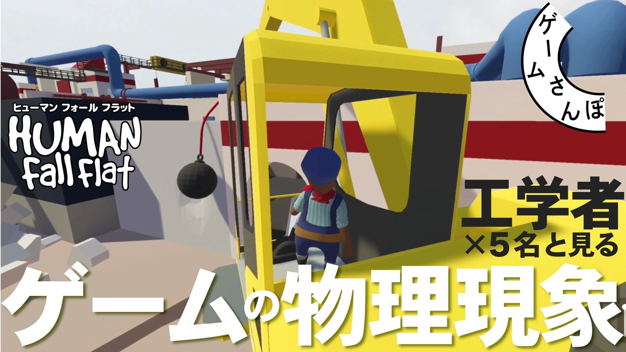 フニャッフニャの動きでお馴染みの物理パズル『HUMAN Fall Flat』を、ガッチガチの大学の先生たち(※ノリはフワッフワ)と一緒にやっていきます!<br><br>新体制での初案件、一生足を向けて寝られない初クライアントは湘南工科大学さんでしたありがとうございます〜!□<br><br>▼YouTubeURL<br><a href="https://youtu.be/oyidnXxjBGU" target="_blank" rel="noopener nofollow">https://youtu.be/oyidnXxjBGU</a><br><br>【出演者】<br><湘南工科大学 工学部の先生たち><br>(順不同)<br>野中誉子/複合材料工学<br>大見敏仁/材料強度学<br>宗秀哉/無線通信工学<br>稲毛達朗/航空宇宙流体工学<br>池原忠明/スポーツ工学<br><br><案内人><br>ホドウ<br>実は高身長。<br><br>いいだ<br>編集者。ツイッタランドによくいます。<br><a href="https://twitter.com/UraIida" target="_blank" rel="noopener nofollow">https://twitter.com/UraIida</a><br><br>【制作関係者】<br>editor:Kawanobe Yukinori & Iida<br>art direction/design:KANAISASAKI<br>motion design:Oka Hiromu<br>music:Hercelot<br><br>*<br><br>ゲームさんぽとは...?<br>いろんな人と一緒にゲームをやって、視点の違い、もっと言えば世界の見え方の違いっぷりを楽しむ動画シリーズです。よければ発案者である「なむ」さんのサイトにもお参りして、企画の歴史を辿ってみてね!<br><a href="https://www.saynum.com/" target="_blank" rel="noopener nofollow">https://www.saynum.com/</a>