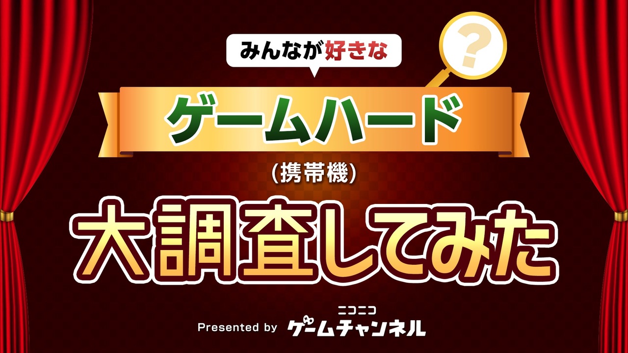 今回はみんなが好きな携帯型ゲームハードを大調査してみました!<br>⇒6位以降の順位はこちらで発表!<a href="https://blog.nicovideo.jp/niconews/194792.html" target="_blank" rel="noopener nofollow">https://blog.nicovideo.jp/niconews/194792.html</a> <br><br>■今回ご紹介させていただいたゲームの関連動画(ニコニコ動画)<br>・Nintendo Switch Lite:<a href="https://onl.bz/u337WS9" target="_blank" rel="noopener nofollow">https://onl.bz/u337WS9</a><br>・PlayStation®Vita:<a href="https://onl.bz/ucgBh9t" target="_blank" rel="noopener nofollow">https://onl.bz/ucgBh9t</a><br>・ニンテンドーDS®:<a href="https://onl.bz/D9Z4UwR" target="_blank" rel="noopener nofollow">https://onl.bz/D9Z4UwR</a><br>・ゲームボーイアドバンス®:<a href="https://onl.bz/PA8tJci" target="_blank" rel="noopener nofollow">https://onl.bz/PA8tJci</a><br>・ニンテンドー3DS™:<a href="https://onl.bz/kmxfnce" target="_blank" rel="noopener nofollow">https://onl.bz/kmxfnce</a><br><br>■ゲーム大調査について<br>ゲームに関する色んなことをニコニコアンケートで調査し、調査結果を動画で紹介します!<br><br>■ニコニコゲームチャンネルについて<br>ゲームの動画、生放送を見るならニコニコ!<br>「ニコニコゲームチャンネル」はゲームの実況配信や特番、見逃し配信、ニュースなどが満載のチャンネルです!<br><br>■関連リンク<br>・ニコニコゲームチャンネル:<a href="https://site.nicovideo.jp/game/" target="_blank" rel="noopener nofollow">https://site.nicovideo.jp/game/</a><br>・ニコニコゲーム公式Twitter:<a href="https://twitter.com/nicogame_PR" target="_blank" rel="noopener nofollow">https://twitter.com/nicogame_PR</a><br>