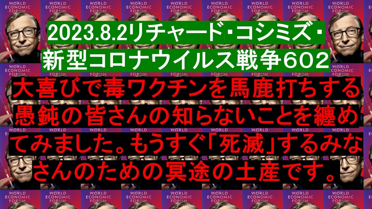 2023.8.3リチャード・コシミズ・新型コロナウイルス戦争602<br><br>大喜びで毒ワクチンを馬鹿打ちする愚鈍の皆さんの知らないことを纏めてみました。もうすぐ「死滅」するみなさんのための冥途の土産です。<br>