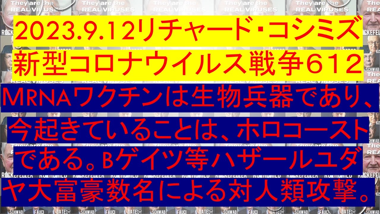 2023.9.12リチャード・コシミズ新型コロナウイルス戦争612<br>MRNAワクチンは生物兵器であり、今起きていることは、ホロコーストである。Bゲイツ等ハザールユダヤ大富豪数名による対人類攻撃。<br>
