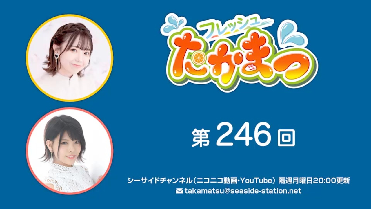 『フレッシュたかまつ』の二人がお届けするノンスタイルラジオ!<br>季節や時節の話題、最近の出来事など、2人の着眼点で進めていくコメンタリー番組です。<br><br><span style="color: #ffa500;"><strong><a href="http://shop.seaside-c.jp/?mode=cate&cbid=2354684&csid=0" target="_blank">DVD、DJCDなど番組商品がシーサイドSHOPにて好評発売中!</a></strong></span><br><br>■番組名: フレッシュたかまつ<br>■配信媒体: シーサイドチャンネル(ニコニコ動画、YouTube)<br>■配信日時: 隔週月曜日 20:00更新<br>■パーソナリティー: 高田憂希、松田颯水<br>■番組公式サイト: <a href="https://seaside-station.net/program/fresh/" target="_blank">https://seaside-station.net/program/fresh/</a><br>■番組ツイッター: <a href="https://twitter.com/takamatsu_ag" target="_blank">https://twitter.com/takamatsu_ag</a><br>■番組メールアドレス: <a href="https://mailto:takamatsu@seaside-station.net" target="_blank">お便りはコチラ</a><br>