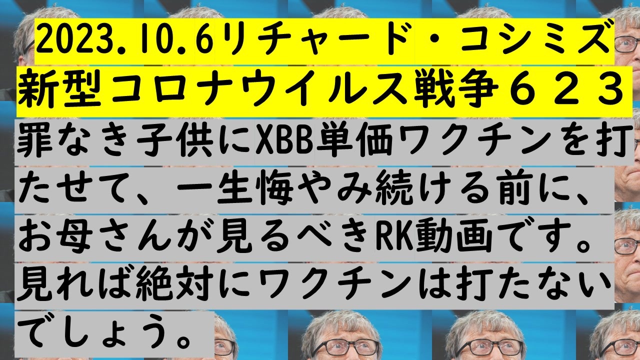 2023.10.6リチャード・コシミズ新型コロナウイルス戦争623<br>罪なき子供にXBB単価ワクチンを打たせて、一生悔やみ続ける前に、お母さんが見るべきRK動画です。見れば絶対にワクチンは打たないでしょう。<br>