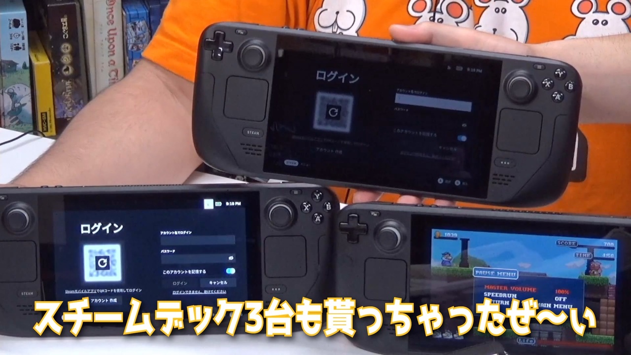 パソコン用配信ゲーム&配信ソフトのプラットフォーム、Steam(スチーム)。<br><br>デスクトップやノートパソコンでどっしり構えてもいいけれど、携帯機でもプレイがしたい。<br>そんなユーザーの願いを叶えたのが、この『Steam Deck』!<br>これさえあえば気軽に出先やベッドで、サッと出して遊べちゃうぞ!<br><br>・・・とはいえ、そう簡単に入手はし難いアイテム。<br>ところがいい大人達は、ややあって(<a href="https://live.nicovideo.jp/watch/lv340640128" target="_blank" rel="noopener">lv340640128</a>)、なんと3台もゲットしてしまったのです。<br><br>Steam Deck<br><a href="https://www.steamdeck.com/ja/" target="_blank" rel="noopener nofollow">https://www.steamdeck.com/ja/</a><br><br>Steamにて好評配信中、『Retro Revengers』もどうぞよろしく!!<br><a href="https://store.steampowered.com/app/2445640/Retro_Revengers/" target="_blank" rel="noopener nofollow">https://store.steampowered.com/app/2445640/Retro_Revengers/</a><br><br>他の動画はこちら→<a href="https://www.nicovideo.jp/mylist/65173216" target="_blank" rel="noopener">mylist/65173216</a><br><br>ユーザーチャンネル→<a href="https://ch.nicovideo.jp/iiotonatati" target="_blank" rel="noopener nofollow">https://ch.nicovideo.jp/iiotonatati</a><br>エクストラチャンネル→<a href="https://ch.nicovideo.jp/iiotonatatiex" target="_blank" rel="noopener nofollow">https://ch.nicovideo.jp/iiotonatatiex</a><br>