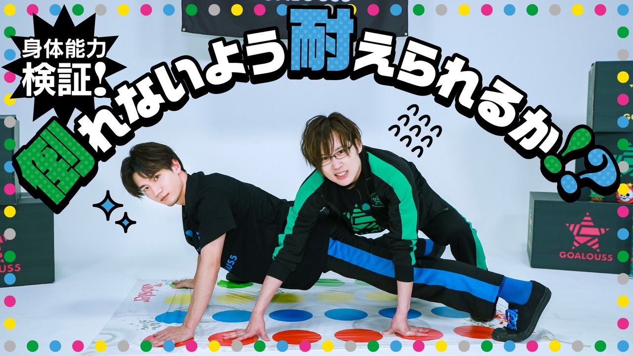 【GOALOUS5 ニコニコ動画支部】<br>ツイスターで限界に挑む!身体能力検証2023(第232回)<br><br>★2023年11月19日(日)「MISSION:GO5 SPECIAL PARTY 2023」開催決定!<br>チケット情報などは下記をご確認ください。<br><a href="https://www.goalous5.com/" target="_blank" rel="noopener nofollow">https://www.goalous5.com/</a><br><br>★4周年記念食事会&戦闘訓練の模様をたっぷり収めた「GOALOUS Training 2023」Blu-ray<br>ジークレストアにて発売中!<br><br>①数量限定ゴーラス盤<br>価格:13,000円(税込)<br>特典:撮り下ろしブロマイド3種、GOALOUS Training Tシャツ<br><a href="https://gcrest.store/collections/goalous5/products/gcp20230153g5" target="_blank" rel="noopener nofollow">https://gcrest.store/collections/goalous5/products/gcp20230153g5</a><br><br>②通常盤<br>価格:8,800円(税込)<br><a href="https://gcrest.store/collections/goalous5/products/gcp20230152g5" target="_blank" rel="noopener nofollow">https://gcrest.store/collections/goalous5/products/gcp20230152g5</a><br><br>※数量限定ゴーラス盤はなくなり次第終了となります。<br>※数量限定ゴーラス盤・通常盤のBlu-ray収録内容は共通です。<br><br>★MISSION:GO5 ボイスドラマVol.04「江戸ノ町ヲ声福セヨ!」発売中!<br>ボイスドラマと新規楽曲「伍色ノ華」も収録!<br><br>①CD販売店情報<br><GCRESTORE(ジークレストア)><br><a href="https://gcrest.store/products/gcp20230113g5" target="_blank" rel="noopener nofollow">https://gcrest.store/products/gcp20230113g5</a><br><アニメイト(通販含む)><br><a href="https://www.animate-onlineshop.jp/pn/pd/2281965/" target="_blank" rel="noopener nofollow">https://www.animate-onlineshop.jp/pn/pd/2281965/</a><br>購入者特典:<br>音声特典ボイスカード(全5種、ランダム)<br>収録内容:各キャラクターの江戸時代シチュエーションボイスを収録<br><br>②コンプリートセット(数量限定)<br>ジークレストアのみでの販売です<br><a href="https://gcrest.store/products/gcp20230114g5" target="_blank" rel="noopener nofollow">https://gcrest.store/products/gcp20230114g5</a><br>購入者特典:<br>音声特典ボイスカード(全5種セット)<br>収録内容:各キャラクターの江戸時代シチュエーションボイスを収録<br>ゴーラスアクリルブロック(MISSION:GO5 Vol.04Ver.)<br><br>※ボイスドラマ、音声特典の収録内容は共通です<br><br>和装姿のアクスタ、卓上のぼり、扇子&手ぬぐいなど、ボイスドラマ関連グッズも予約受付中!<br><a href="https://gcrest.store/collections/goalous5" target="_blank" rel="noopener nofollow">https://gcrest.store/collections/goalous5</a><br><br>★GOALOUS5「GOALOUS BEST」予約受付中!<br>①販売店情報<br><GCRESTORE(ジークレストア)><br><a href="https://gcrest.store/products/gcp20230093g5" target="_blank" rel="noopener nofollow">https://gcrest.store/products/gcp20230093g5</a><br><アニメイト(通販含む全店舗)><br><a href="https://www.animate-onlineshop.jp/pn/pd/2268223/" target="_blank" rel="noopener nofollow">https://www.animate-onlineshop.jp/pn/pd/2268223/</a><br>※店舗別購入特典もあります<br><br>②収録内容(CD +Blu-ray)<br>【CD収録曲】<br>1.GO5!GOALOUS5!<br>2.Let's GOALOUS5!!<br>3.5 AHEAD!<br>4.RosyBeat<br>5.MIRAGE SHOW<br>6.Dreaming Time<br>7.Get set, 5!<br>8.GOALOUS Festa<br>9.戦慄のGOALOUS5!!!!!<br><br>【Blu-ray収録内容】<br>1.戦慄のGOALOUS5!!!!! Music Video<br>2.Making<br><br>GCGC-0016/¥6,110(税込)¥5,555(税抜)<br><br>③店舗別購入特典<br>GCRESTORE(ジークレストア):複製直筆コメント入り2L判ブロマイド<br>アニメイトオンライン:L判ブロマイド<br>※特典はなくなり次第、終了となります。<br><br>★4周年記念グッズ発売中!<br><a href="https://gcrest.store/collections/goalous5" target="_blank" rel="noopener nofollow">https://gcrest.store/collections/goalous5</a><br><br>★GOALOUS5『声福大作戦〜祝★三周年!進めゴーラス!〜』『声福大作戦 ~LIVE & READING~』Blu-ray 発売中!<br><br>①販売店情報<br><GCRESTORE(ジークレストア)><br><a href="https://gcrest.store/collections/goalous5" target="_blank" rel="noopener nofollow">https://gcrest.store/collections/goalous5</a><br><アニメイト(通販含む)><br><a href="https://www.animate-onlineshop.jp/pn/pd/2232907/" target="_blank" rel="noopener nofollow">https://www.animate-onlineshop.jp/pn/pd/2232907/</a><br><br>②各商品情報とダイジェスト<br>『声福大作戦〜祝★三周年!進めゴーラス!〜』<br><a href="https://youtu.be/VDnDTccWKq8" target="_blank" rel="noopener nofollow">https://youtu.be/VDnDTccWKq8</a><br>『声福大作戦 ~LIVE & READING~』<br><a href="https://youtu.be/cwDNdGwUIqQ" target="_blank" rel="noopener nofollow">https://youtu.be/cwDNdGwUIqQ</a><br><br>③同時購入特典<br>『声福大作戦〜祝★三周年!進めゴーラス!〜』と『声福大作戦 ~LIVE & READING~』Blu-rayを同時購入でM∞CARD(悪のスペシャルトーク収録)をお渡しします!<br>オーコメ収録後のGOALOUS5の感想などトークを収録!(約18分)<br>※内容はジークレストア、アニメイト共通となります<br>※特典はなくなり次第終了となります<br><br> ★悪の相談募集中<br>下記のフォームに記入、投稿をお願いいたします。<br><a href="http://bit.ly/2Q3wMUh" target="_blank" rel="noopener nofollow">http://bit.ly/2Q3wMUh</a><br><br>★GOALOUS5(ゴーラスファイブ)とは<br>世界声福(征服)を目論む悪の組織が、先遣隊として声を生業にする熊谷健太郎、小松昌平、寺島惇太、仲村宗悟、深町寿成を派遣した。それが「GOALOUS5(ゴーラスファイブ)」だ。5人は声を武器に人々を虜にし、世界を声福(征