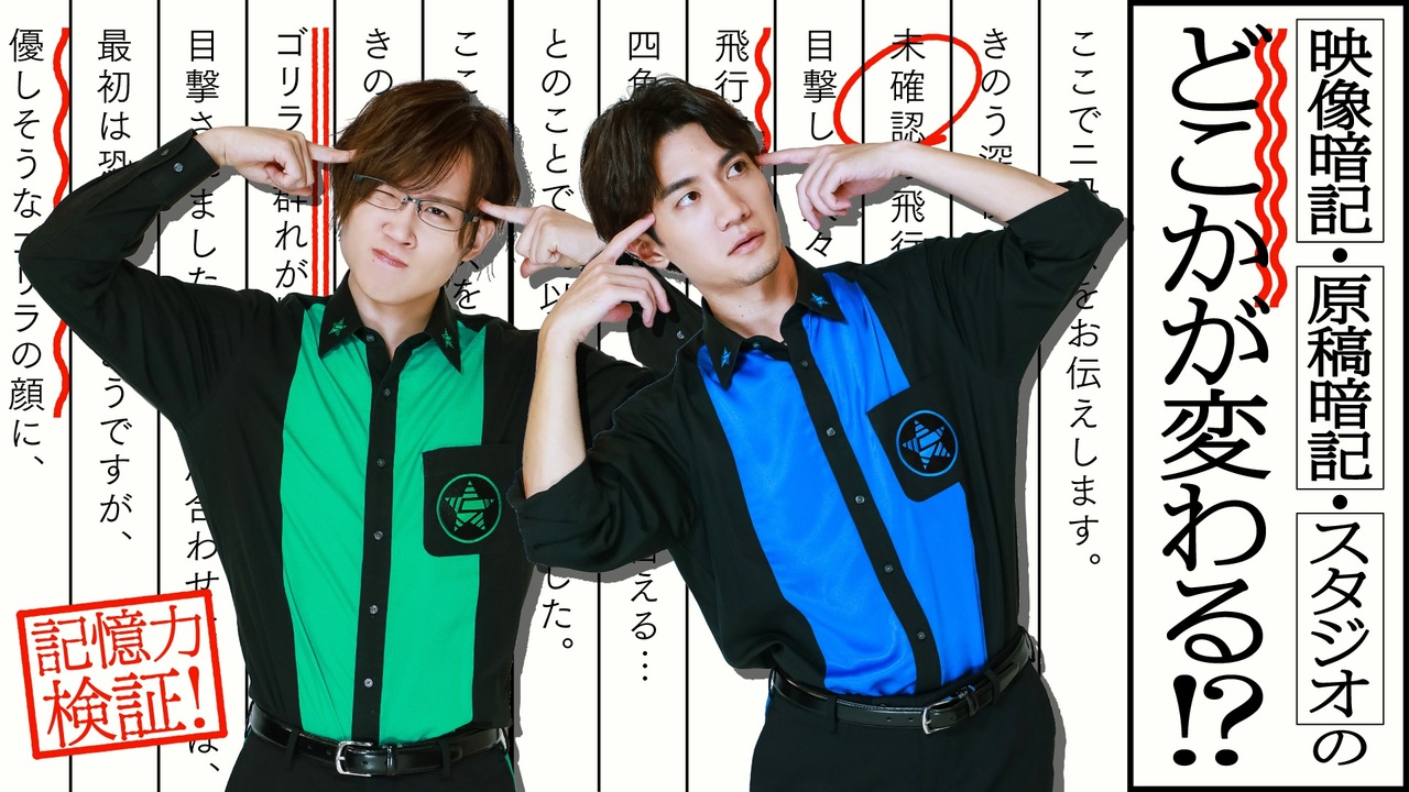【GOALOUS5 ニコニコ動画支部】<br>映像記憶!原稿記憶!アジトのどこかが変わる!?記憶力検証2023(第233回)<br><br>★2023年11月19日(日)「MISSION:GO5 SPECIAL PARTY 2023」開催決定!<br>チケット情報などは下記をご確認ください。<br><a href="https://www.goalous5.com/" target="_blank" rel="noopener nofollow">https://www.goalous5.com/</a><br><br>★4周年記念食事会&戦闘訓練の模様をたっぷり収めた「GOALOUS Training 2023」Blu-ray<br>ジークレストアにて発売中!<br><br>①数量限定ゴーラス盤<br>価格:13,000円(税込)<br>特典:撮り下ろしブロマイド3種、GOALOUS Training Tシャツ<br><a href="https://gcrest.store/collections/goalous5/products/gcp20230153g5" target="_blank" rel="noopener nofollow">https://gcrest.store/collections/goalous5/products/gcp20230153g5</a><br><br>②通常盤<br>価格:8,800円(税込)<br><a href="https://gcrest.store/collections/goalous5/products/gcp20230152g5" target="_blank" rel="noopener nofollow">https://gcrest.store/collections/goalous5/products/gcp20230152g5</a><br><br>※数量限定ゴーラス盤はなくなり次第終了となります。<br>※数量限定ゴーラス盤・通常盤のBlu-ray収録内容は共通です。<br><br>★MISSION:GO5 ボイスドラマVol.04「江戸ノ町ヲ声福セヨ!」発売中!<br>ボイスドラマと新規楽曲「伍色ノ華」も収録!<br><br>①CD販売店情報<br><GCRESTORE(ジークレストア)><br><a href="https://gcrest.store/products/gcp20230113g5" target="_blank" rel="noopener nofollow">https://gcrest.store/products/gcp20230113g5</a><br><アニメイト(通販含む)><br><a href="https://www.animate-onlineshop.jp/pn/pd/2281965/" target="_blank" rel="noopener nofollow">https://www.animate-onlineshop.jp/pn/pd/2281965/</a><br>購入者特典:<br>音声特典ボイスカード(全5種、ランダム)<br>収録内容:各キャラクターの江戸時代シチュエーションボイスを収録<br><br>②コンプリートセット(数量限定)<br>ジークレストアのみでの販売です<br><a href="https://gcrest.store/products/gcp20230114g5" target="_blank" rel="noopener nofollow">https://gcrest.store/products/gcp20230114g5</a><br>購入者特典:<br>音声特典ボイスカード(全5種セット)<br>収録内容:各キャラクターの江戸時代シチュエーションボイスを収録<br>ゴーラスアクリルブロック(MISSION:GO5 Vol.04Ver.)<br><br>※ボイスドラマ、音声特典の収録内容は共通です<br><br>和装姿のアクスタ、卓上のぼり、扇子&手ぬぐいなど、ボイスドラマ関連グッズも予約受付中!<br><a href="https://gcrest.store/collections/goalous5" target="_blank" rel="noopener nofollow">https://gcrest.store/collections/goalous5</a><br><br>★GOALOUS5「GOALOUS BEST」予約受付中!<br>①販売店情報<br><GCRESTORE(ジークレストア)><br><a href="https://gcrest.store/products/gcp20230093g5" target="_blank" rel="noopener nofollow">https://gcrest.store/products/gcp20230093g5</a><br><アニメイト(通販含む全店舗)><br><a href="https://www.animate-onlineshop.jp/pn/pd/2268223/" target="_blank" rel="noopener nofollow">https://www.animate-onlineshop.jp/pn/pd/2268223/</a><br>※店舗別購入特典もあります<br><br>②収録内容(CD +Blu-ray)<br>【CD収録曲】<br>1.GO5!GOALOUS5!<br>2.Let's GOALOUS5!!<br>3.5 AHEAD!<br>4.RosyBeat<br>5.MIRAGE SHOW<br>6.Dreaming Time<br>7.Get set, 5!<br>8.GOALOUS Festa<br>9.戦慄のGOALOUS5!!!!!<br><br>【Blu-ray収録内容】<br>1.戦慄のGOALOUS5!!!!! Music Video<br>2.Making<br><br>GCGC-0016/¥6,110(税込)¥5,555(税抜)<br><br>③店舗別購入特典<br>GCRESTORE(ジークレストア):複製直筆コメント入り2L判ブロマイド<br>アニメイトオンライン:L判ブロマイド<br>※特典はなくなり次第、終了となります。<br><br>★4周年記念グッズ発売中!<br><a href="https://gcrest.store/collections/goalous5" target="_blank" rel="noopener nofollow">https://gcrest.store/collections/goalous5</a><br><br>★GOALOUS5『声福大作戦〜祝★三周年!進めゴーラス!〜』『声福大作戦 ~LIVE & READING~』Blu-ray 発売中!<br><br>①販売店情報<br><GCRESTORE(ジークレストア)><br><a href="https://gcrest.store/collections/goalous5" target="_blank" rel="noopener nofollow">https://gcrest.store/collections/goalous5</a><br><アニメイト(通販含む)><br><a href="https://www.animate-onlineshop.jp/pn/pd/2232907/" target="_blank" rel="noopener nofollow">https://www.animate-onlineshop.jp/pn/pd/2232907/</a><br><br>②各商品情報とダイジェスト<br>『声福大作戦〜祝★三周年!進めゴーラス!〜』<br><a href="https://youtu.be/VDnDTccWKq8" target="_blank" rel="noopener nofollow">https://youtu.be/VDnDTccWKq8</a><br>『声福大作戦 ~LIVE & READING~』<br><a href="https://youtu.be/cwDNdGwUIqQ" target="_blank" rel="noopener nofollow">https://youtu.be/cwDNdGwUIqQ</a><br><br>③同時購入特典<br>『声福大作戦〜祝★三周年!進めゴーラス!〜』と『声福大作戦 ~LIVE & READING~』Blu-rayを同時購入でM∞CARD(悪のスペシャルトーク収録)をお渡しします!<br>オーコメ収録後のGOALOUS5の感想などトークを収録!(約18分)<br>※内容はジークレストア、アニメイト共通となります<br>※特典はなくなり次第終了となります<br><br> ★悪の相談募集中<br>下記のフォームに記入、投稿をお願いいたします。<br><a href="http://bit.ly/2Q3wMUh" target="_blank" rel="noopener nofollow">http://bit.ly/2Q3wMUh</a><br><br>★GOALOUS5(ゴーラスファイブ)とは<br>世界声福(征服)を目論む悪の組織が、先遣隊として声を生業にする熊谷健太郎、小松昌平、寺島惇太、仲村宗悟、深町寿成を派遣した。それが「GOALOUS5(ゴーラスファイブ)」だ。5人は声を武器に人々を虜に