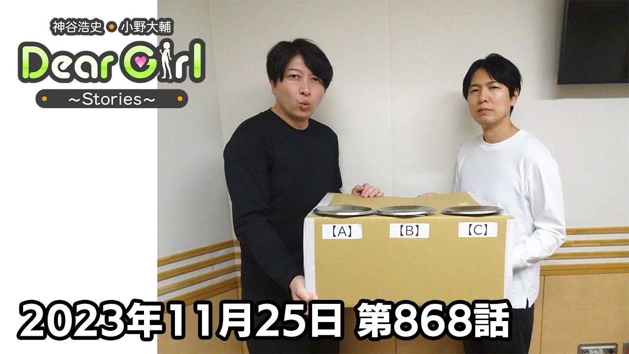 『神谷浩史・小野大輔のDear Girl〜Stories〜』<br>声優・神谷浩史、小野大輔がストーリーテラーとなってラジオの前のたった一人のアナタのために様々なストーリーをお届けするラジオプログラム。<br><br>こちらでは番組アーカイブを無料でお聴きいただけます。<br>今回は、2023年11月25日に文化放送で放送した第868話「何だこれ?変な仕事だな」をお届けします。是非、最後までお聴きください。<br><br>----------<br><br>「Dear Girl〜Stories〜Festival Carnival 15年祭」を収録したBlu-ray&DVDが2023年11月30日発売決定!<br>横浜公演2日目の模様を完全収録!特典映像には、神戸公演両日、横浜公演初日のMASOCHISTIC ONO BAND (MOB)出演パートの日替わり楽曲コーナー(「Merry XXXmas」「Punishment is Reward」「Sweeeet!!」)とメジャーデビュー記者会見の模様を収録!<br>音声特典にはオーディオコメンタリーも!<br><br>▼ご予約はこちら<br>【Blu-ray】<br><a href="https://aandg.shop-pro.jp/?pid=177132372" target="_blank" rel="noopener nofollow">https://aandg.shop-pro.jp/?pid=177132372</a><br>【DVD】<br><a href="https://aandg.shop-pro.jp/?pid=177131752" target="_blank" rel="noopener nofollow">https://aandg.shop-pro.jp/?pid=177131752</a><br><br>----------<br><br>文化放送&ラジオ大阪で放送中のラジオ番組「神谷浩史・小野大輔のDear Girl~Stories~」の第15弾主題歌は、GReeeeNとコラボしてお届け!番組主題歌CD「=」がアニメイト、文化放送A&Gショップにて発売中!<br><br>▼ご購入はこちら <br>アニメイト(特典:B2ポスター)<br><a href="https://www.animate-onlineshop.jp/pn/pd/2242613/" target="_blank" rel="noopener nofollow">https://www.animate-onlineshop.jp/pn/pd/2242613/</a> <br><br>文化放送A&Gショップ (特典:L判ブロマイド)<br><a href="https://aandg.shop-pro.jp/?pid=173983115" target="_blank" rel="noopener nofollow">https://aandg.shop-pro.jp/?pid=173983115</a><br><br>----------<br><br><br>番組では皆さんからのお便りお待ちしています。<br><br>・放送日時<br>文化放送 毎週(土)25時〜25時30分<br>ラジオ大阪 毎週(日)23時〜23時30分<br>インターネットサイマルラジオradikoでも聴取可能です。<br><br>・公式Twitter<br><a href="https://twitter.com/uchi_P_" target="_blank" rel="noopener nofollow">https://twitter.com/uchi_P_</a><br><br>・番組メールアドレス<br>dgs@joqr.net<br><br>・番組公式サイト<br><a href="https://pc.animelo.jp/special/deargirl-stories/" target="_blank" rel="noopener nofollow">https://pc.animelo.jp/special/deargirl-stories/</a><br>