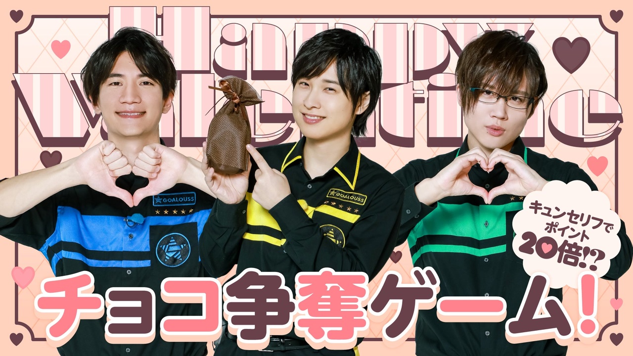 【GOALOUS5 ニコニコ動画支部】<br>チョコをかけてゲームに挑戦!胸きゅんセリフでポイント20倍!(第247回)<br><br>★2024年4月7日構成員集会開催決定!<br>テーマソング第5弾「GO5 NEXT」CD先行抽選応募受付中!<br>※ジークレストア、アニメイトどちらでご購入でも応募券が付きます<br><a href="https://www.goalous5.com/" target="_blank" rel="noopener nofollow">https://www.goalous5.com/</a><br><br>★テーマソング第5弾「GO5 NEXT」発売中!<br>①販売店情報<br><GCRESTORE(ジークレストア)><br><a href="https://gcrest.store/collections/goalous5" target="_blank" rel="noopener nofollow">https://gcrest.store/collections/goalous5</a><br><アニメイト(通販含む全店舗)><br><a href="https://www.animate-onlineshop.jp/pn/pd/2372730/" target="_blank" rel="noopener nofollow">https://www.animate-onlineshop.jp/pn/pd/2372730/</a><br>※店舗別購入特典は下記ご確認ください<br><br>②収録内容(CD +Blu-ray)<br>【MV盤(CD +Blu-ray)】<br><収録曲><br>01.GO5 NEXT<br>02.ゴーラスたいそう<br>03.GO5 NEXT(Instrumental)<br>04.ゴーラスたいそう(Instrumental)<br><br><Blu-ray映像収録内容><br>01.GO5 NEXT Music Video<br>02.Making<br>03.Trailer<br><br>GCGC-0018/¥2,640円(税込)<br><br>③店舗別購入特典<br>GCRESTORE(ジークレストア):複製直筆コメント入り2L判ブロマイド<br>アニメイトオンライン:L判ブロマイド<br>※特典はなくなり次第、終了となります。<br><br>④共通特典<br>2024年4月7日開催「構成員集会」CD先行抽選応募券<br><br>★4周年記念食事会&戦闘訓練の模様をたっぷり収めた「GOALOUS Training 2023」Blu-ray<br>ジークレストアにて発売中!<br><br>①数量限定ゴーラス盤<br>価格:13,000円(税込)<br>特典:撮り下ろしブロマイド3種、GOALOUS Training Tシャツ<br><a href="https://gcrest.store/collections/goalous5/products/gcp20230153g5" target="_blank" rel="noopener nofollow">https://gcrest.store/collections/goalous5/products/gcp20230153g5</a><br><br>②通常盤<br>価格:8,800円(税込)<br><a href="https://gcrest.store/collections/goalous5/products/gcp20230152g5" target="_blank" rel="noopener nofollow">https://gcrest.store/collections/goalous5/products/gcp20230152g5</a><br><br>※数量限定ゴーラス盤はなくなり次第終了となります。<br>※数量限定ゴーラス盤・通常盤のBlu-ray収録内容は共通です。<br><br>★MISSION:GO5 ボイスドラマVol.04「江戸ノ町ヲ声福セヨ!」発売中!<br>ボイスドラマと新規楽曲「伍色ノ華」も収録!<br><br>①CD販売店情報<br><GCRESTORE(ジークレストア)><br><a href="https://gcrest.store/products/gcp20230113g5" target="_blank" rel="noopener nofollow">https://gcrest.store/products/gcp20230113g5</a><br><アニメイト(通販含む)><br><a href="https://www.animate-onlineshop.jp/pn/pd/2281965/" target="_blank" rel="noopener nofollow">https://www.animate-onlineshop.jp/pn/pd/2281965/</a><br>購入者特典:<br>音声特典ボイスカード(全5種、ランダム)<br>収録内容:各キャラクターの江戸時代シチュエーションボイスを収録<br><br>②コンプリートセット(数量限定)<br>ジークレストアのみでの販売です<br><a href="https://gcrest.store/products/gcp20230114g5" target="_blank" rel="noopener nofollow">https://gcrest.store/products/gcp20230114g5</a><br>購入者特典:<br>音声特典ボイスカード(全5種セット)<br>収録内容:各キャラクターの江戸時代シチュエーションボイスを収録<br>ゴーラスアクリルブロック(MISSION:GO5 Vol.04Ver.)<br><br>※ボイスドラマ、音声特典の収録内容は共通です<br><br>和装姿のアクスタ、卓上のぼり、扇子&手ぬぐいなど、ボイスドラマ関連グッズも発売中!<br><a href="https://gcrest.store/collections/goalous5" target="_blank" rel="noopener nofollow">https://gcrest.store/collections/goalous5</a><br><br> ★悪の相談募集中<br>下記のフォームに記入、投稿をお願いいたします。<br><a href="http://bit.ly/2Q3wMUh" target="_blank" rel="noopener nofollow">http://bit.ly/2Q3wMUh</a><br><br>★GOALOUS5(ゴーラスファイブ)とは<br>世界声福(征服)を目論む悪の組織が、先遣隊として声を生業にする熊谷健太郎、小松昌平、寺島惇太、仲村宗悟、深町寿成を派遣した。それが「GOALOUS5(ゴーラスファイブ)」だ。5人は声を武器に人々を虜にし、世界を声福(征服)していくための活動を行っていく。<br><br>★GOALOUS5の虜になった者は、公式Twitterをフォロー、YouTubeチャンネル登録を<br><br>★GOALOUS5公式Twitter<br>@sir_goalous( <a href="https://twitter.com/sir_goalous" target="_blank" rel="noopener nofollow">https://twitter.com/sir_goalous</a> )<br><br>運営:株式会社ジークレスト<br><a href="https://www.gcrest.com/" target="_blank" rel="noopener nofollow">https://www.gcrest.com/</a>