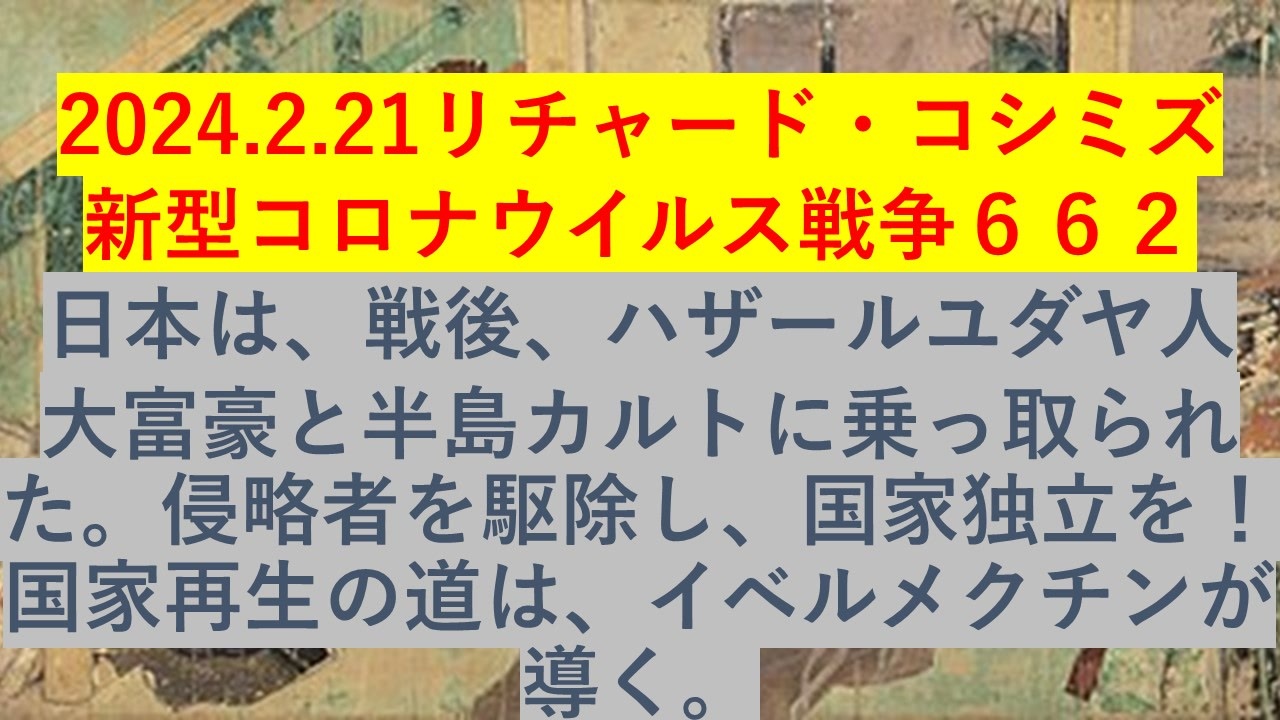 2024.2.21リチャード・コシミズ新型コロナウイルス戦争662<br>日本は、戦後、ハザールユダヤ人大富豪と半島カルトに乗っ取られた。侵略者を駆除し、国家独立を!国家再生の道は、イベルメクチンが導く。<br>