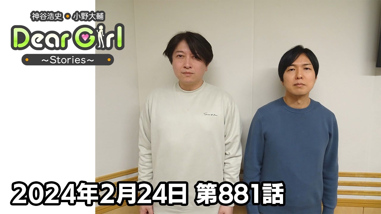 『神谷浩史・小野大輔のDear Girl〜Stories〜』<br>声優・神谷浩史、小野大輔がストーリーテラーとなってラジオの前のたった一人のアナタのために様々なストーリーをお届けするラジオプログラム。<br><br>こちらでは番組アーカイブを無料でお聴きいただけます。<br>今回は、2024年2月24日に文化放送で放送した第881話「気持ちはブルーノ・マーズ」をお届けします。是非、最後までお聴きください。<br><br>※先程投稿いたしましたアーカイブ動画に不備がございましたので、 修正したものを上げなおし致しました。ご迷惑おかけし申し訳ありません。<br><br>----------<br><br>番組初のエアバンド「MASOCHISTIC ONO BAND」10周年記念イベント「MASOCHISTIC ONO BAND 10th Anniversary Gasoline Meeting」ニコニコ生放送にてタイムシフト視聴チケット発売中!<br><br>●視聴URL<br><a href="https://live.nicovideo.jp/watch/lv344129179" target="_blank" rel="noopener nofollow">https://live.nicovideo.jp/watch/lv344129179</a><br><br>●チケット販売期間<br>2024年2月13日(火)12:00~2024年3月12日(火)18:00<br><br>●タイムシフト視聴期間<br>2024年3月12日(火)23:59まで<br>※期間中であれば何度でも、生放送終了後に番組を視聴することが可能です。<br>※上記期間を過ぎると、視聴の途中であっても番組を見ることができなくなります。<br><br>チケット価格<br>通常:4,400円(税込)<br>DGSチャンネル会員、ニコ動プレミアム会員:3,960円(税込)<br>└通常価格から10%割引<br>※サービス手数料は別途お客様負担となります。<br><br>【イベント概要】<br>タイトル:MASOCHISTIC ONO BAND 10th Anniversary Gasoline Meeting<br>日程:2024年2月25日(日) 16:00開場 17:00開演(予定)<br>会場:パシフィコ横浜 国立大ホール<br>出演:MASOCHISTIC ONO BAND<br><br>----------<br><br>「Dear Girl〜Stories〜Festival Carnival 15年祭」を収録したBlu-ray&DVDが文化放送A&Gショップで発売中!<br>横浜公演2日目の模様を完全収録!特典映像には、神戸公演両日、横浜公演初日のMASOCHISTIC ONO BAND (MOB)出演パートの日替わり楽曲コーナー(「Merry XXXmas」「Punishment is Reward」「Sweeeet!!」)とメジャーデビュー記者会見の模様を収録!<br>音声特典にはオーディオコメンタリーも!<br><br>▼ご購入はこちら<br>【Blu-ray】<br><a href="https://aandg.shop-pro.jp/?pid=177132372" target="_blank" rel="noopener nofollow">https://aandg.shop-pro.jp/?pid=177132372</a><br>【DVD】<br><a href="https://aandg.shop-pro.jp/?pid=177131752" target="_blank" rel="noopener nofollow">https://aandg.shop-pro.jp/?pid=177131752</a><br><br>----------<br><br><br>番組では皆さんからのお便りお待ちしています。<br><br>・放送日時<br>文化放送 毎週(土)25時〜25時30分<br>ラジオ大阪 毎週(日)23時〜23時30分<br>インターネットサイマルラジオradikoでも聴取可能です。<br><br>・公式Twitter<br><a href="https://twitter.com/uchi_P_" target="_blank" rel="noopener nofollow">https://twitter.com/uchi_P_</a><br><br>・番組メールアドレス<br>dgs@joqr.net<br><br>・番組公式サイト<br><a href="https://pc.animelo.jp/special/deargirl-stories/" target="_blank" rel="noopener nofollow">https://pc.animelo.jp/special/deargirl-stories/</a><br><br><br>