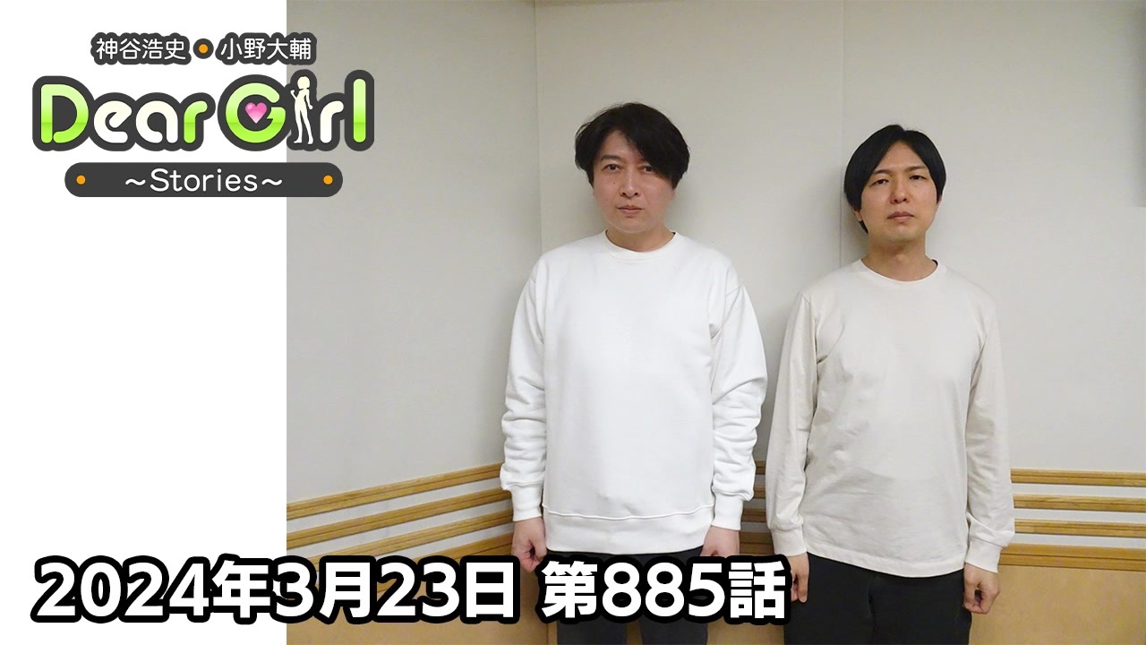 『神谷浩史・小野大輔のDear Girl〜Stories〜』<br>声優・神谷浩史、小野大輔がストーリーテラーとなってラジオの前のたった一人のアナタのために様々なストーリーをお届けするラジオプログラム。<br><br>こちらでは番組アーカイブを無料でお聴きいただけます。<br>今回は、2024年3月23日に文化放送で放送した第885話「神谷は事情通」をお届けします。是非、最後までお聴きください。<br><br>----------<br>番組初のエアバンド「MASOCHISTIC ONO BAND」10周年記念イベント「MASOCHISTIC ONO BAND 10th Anniversary Gasoline Meeting」<br>A&Gショップにてイベントグッズ発売中!<br><br>ご購入はこちら!<br>→<a href="https://aandg.shop-pro.jp/" target="_blank" rel="noopener nofollow">https://aandg.shop-pro.jp/</a><br>----------<br><br>「Dear Girl〜Stories〜Festival Carnival 15年祭」を収録したBlu-ray&DVDが文化放送A&Gショップで発売中!<br>横浜公演2日目の模様を完全収録!特典映像には、神戸公演両日、横浜公演初日のMASOCHISTIC ONO BAND (MOB)出演パートの日替わり楽曲コーナー(「Merry XXXmas」「Punishment is Reward」「Sweeeet!!」)とメジャーデビュー記者会見の模様を収録!<br>音声特典にはオーディオコメンタリーも!<br><br>▼ご購入はこちら<br>【Blu-ray】<br><a href="https://aandg.shop-pro.jp/?pid=177132372" target="_blank" rel="noopener nofollow">https://aandg.shop-pro.jp/?pid=177132372</a><br>【DVD】<br><a href="https://aandg.shop-pro.jp/?pid=177131752" target="_blank" rel="noopener nofollow">https://aandg.shop-pro.jp/?pid=177131752</a><br><br>----------<br><br><br>番組では皆さんからのお便りお待ちしています。<br><br>・放送日時<br>文化放送 毎週(土)25時〜25時30分<br>ラジオ大阪 毎週(日)23時〜23時30分<br>インターネットサイマルラジオradikoでも聴取可能です。<br><br>・公式Twitter<br><a href="https://twitter.com/uchi_P_" target="_blank" rel="noopener nofollow">https://twitter.com/uchi_P_</a><br><br>・番組メールアドレス<br>dgs@joqr.net<br><br>・番組公式サイト<br><a href="https://pc.animelo.jp/special/deargirl-stories/" target="_blank" rel="noopener nofollow">https://pc.animelo.jp/special/deargirl-stories/</a><br><br><br>