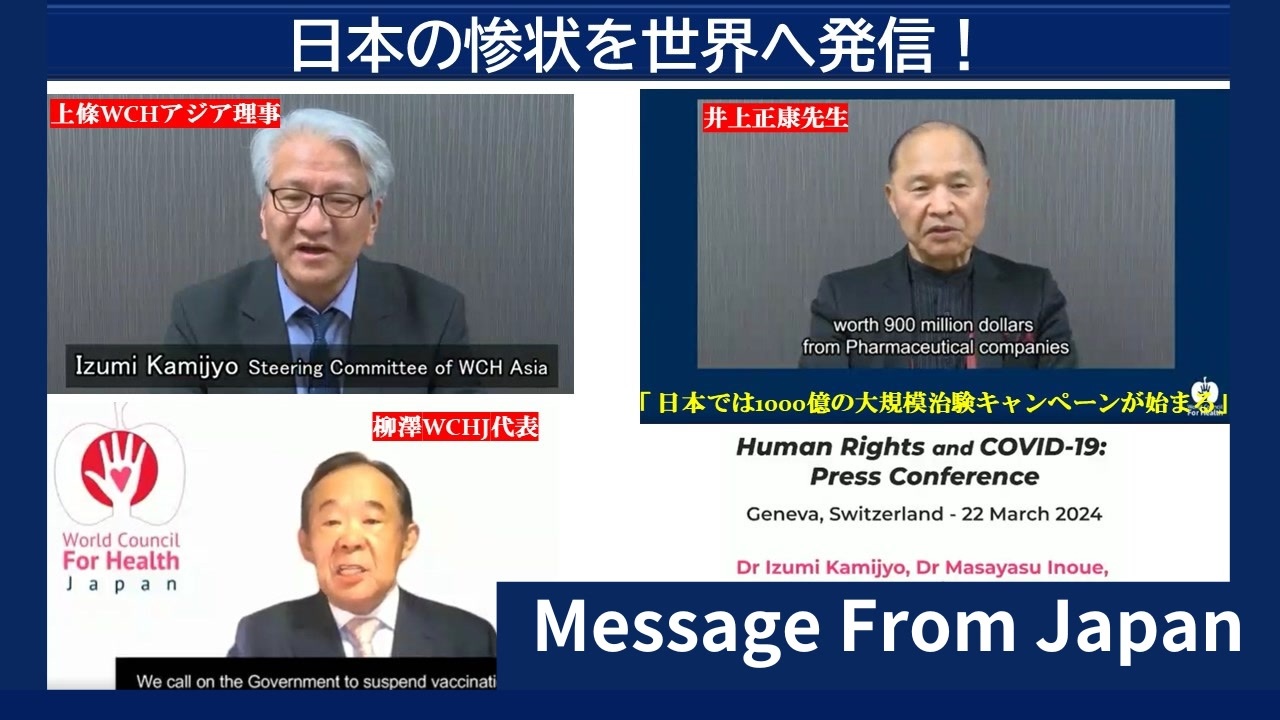 ★『第一回 環太平洋連合 インターナショナル・ウェビナー』<br>日時:2024年4月14日(日)日本時間朝8時スタート<br>参加者:メリル・ナス博士他<br>参加申込:<a href="https://tinyurl.com/1stPRCW24" target="_blank" rel="noopener nofollow">https://tinyurl.com/1stPRCW24</a><br>主催:Door To Freedom&ワールドカウンシル・フォー・ヘルスWCH<br><br>★【WHOに反対記者会見完全版】<a href="https://www.nicovideo.jp/watch/so43635775" target="_blank" rel="noopener nofollow">https://www.nicovideo.jp/watch/so43635775</a><br><br>■デモ前日SP!4月12日(金)20:00~LIVE<br>【ゲスト:近現代史研究家 林千勝氏】LIVE適塾☆世相解剖学 第34回ニコ生ライブ<br><a href="https://live.nicovideo.jp/watch/lv344565303" target="_blank" rel="noopener nofollow">https://live.nicovideo.jp/watch/lv344565303</a><br>zoomで番組参加はブロマガから➨<a href="https://ch.nicovideo.jp/live-tekijuku/blomaga/ar2192365" target="_blank" rel="noopener nofollow">https://ch.nicovideo.jp/live-tekijuku/blomaga/ar2192365</a><br><br>★『パンデミック条約・国際保健規則(IHR)反対集会』<br>日時:4月13日(土) 9:30~11:30(9:15受付開始)<br>場所:牛込箪笥区民ホール <br>※著名登壇者多数参加/申込不要/先着400名/参加費無料<br><br>同日午後から『池袋行進デモ』目指せ10万人!<br>集合時間:13:30東池袋中央公園<br>出発:14:00~15:00解散<br>※参加費無料/プラカード等は各自持参。デモに関係のないものはご遠慮ください。<br>主催:パンデミック条約に反対する会 090-6709-9380(佐藤)<br><br>★ワールドカウンシルフォーヘルスジャパンの100万人署名運動<br>〜すべての人が健康と幸せを自由に選べる世界に〜<br>いま、命と健康と人権の侵害が行われようとしています<br>この問題を解決するために5月20日までに署名を集めます<br>賛同する方➨<a href="https://wch-japan.kifusuru.net/petition/" target="_blank" rel="noopener nofollow">https://wch-japan.kifusuru.net/petition/</a><br><br>WCHJではボランティアを募集しています<br>HP➨<a href="https://wch-japan.org/" target="_blank" rel="noopener nofollow">https://wch-japan.org/</a><br>ーーーーーーーーーーーーーーーー<br>【井上正康講演会情報】<br>■『山梨から未来の健康を考える』<br>日時:4/28(日)9:00開場 9:30~16:30<br>会場:富士吉田市民会館小ホール 山梨県富士吉田市緑ヶ丘2-5-23<br>参加費:1,000円/高校生以下無料<br>定員:270名<br>登壇者:井上正康・池田としえ<br>申込:下記のメールにてご予約ください。<br>fuji.kodomo.action@gmail.com<br><br>■『世界大変の中の日本』<br>日時:4/30(火)9:00受付 10:00~17:00<br>登壇者:石濱哲信/池田としえ(日野市議会議員)/井上正康(大阪市立大学名誉教授)/小川和久(軍事アナリスト)<br>会場:大野城まどかぴあ大ホール 福岡県大野城市曙町2-3-1<br>参加費:前売り3,000円/当日4,000円/学生無料<br>申込:<a href="https://forms.gle/iUL4q6LbtSscTXWWA" target="_blank" rel="noopener nofollow">https://forms.gle/iUL4q6LbtSscTXWWA</a><br>ーーーーーーーーーーーーーーーーーーーーー<br>□3/5発売『なぜ、医師の私が命がけでWHO脱退を呼びかけるのか?』<br>Amazonにて予約受付中<br><a href="https://amzn.asia/d/iW5d2ZD" target="_blank" rel="noopener nofollow">https://amzn.asia/d/iW5d2ZD</a><br><br>□【公式ニコニコ】井上正康LIVE適塾☆世相解剖学<br>➡<a href="https://ch.nicovideo.jp/live-tekijuku" target="_blank" rel="noopener nofollow">https://ch.nicovideo.jp/live-tekijuku</a><br>フォローすると新着動画通知が届きます<br><br>□井上正康公式メルマガ無料登録はコチラ➡<br><a href="https://resast.jp/subscribe/211398" target="_blank" rel="noopener nofollow">https://resast.jp/subscribe/211398</a><br>ーーーーーーーーーーーーーーーーーーーー<br>■YouTube<br>セカンドチャンネル:<a href="https://www.youtube.com/channel/UC_bu0mE65CYzTrPJR6SPlnw" target="_blank" rel="noopener nofollow">https://www.youtube.com/channel/UC_bu0mE65CYzTrPJR6SPlnw</a><br>サードチャンネル:<a href="https://www.youtube.com/channel/UCc6SAAdVVyEvtOKXuEfoD_g" target="_blank" rel="noopener nofollow">https://www.youtube.com/channel/UCc6SAAdVVyEvtOKXuEfoD_g</a><br>
