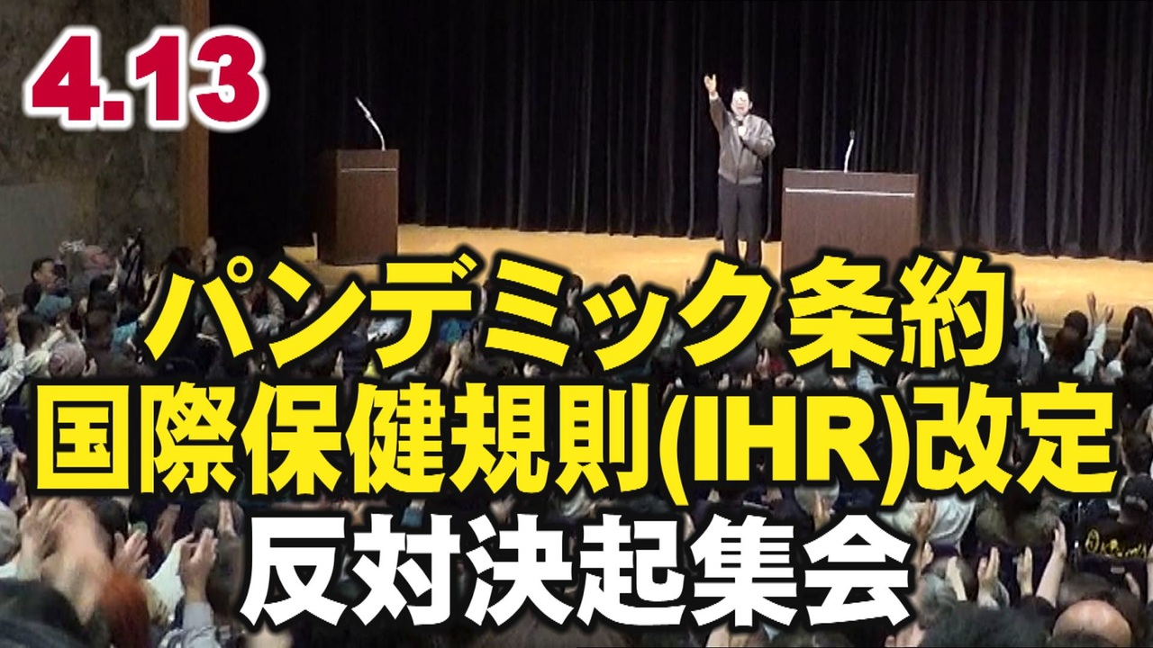 パンデミック条約・国際保健規則(IHR)反対集会の編集版を配信致します。<br><br>日時:4月13日<br>場所:牛込箪笥区民ホール<br>登壇者:登壇順<br>吉野 敏明 (医師)<br>須藤 元気 (参議院議員)<br>井上 正康 (大阪市立大学医学部名誉教授)<br>林 千勝 (近現代史研究家)<br>水島 総 (日本文化チャンネル桜 代表)<br>村上 康文 (東京理科大学 名誉授授)<br>松田 学 (松田政策研究所 代表)<br>深田 萌絵 (ITビジネスアナリスト)<br>山中 泉 (参政党 東北ブロック国政改革委員)<br>岡 真樹子 (愛国女性のつどい花時計 代表)<br>ポール・ド・ラクビビエ (外資系銀行勤務)<br>我那覇 真子 (ジャーナリスト)<br>池田 としえ (東京都 日野市議会議員)<br>司会進行:<br>佐藤 和夫 (英霊の名誉を守り顕彰する会 会長)<br><br><br>◆チャンネル桜の人気番組「闘論!倒論!討論!」支援会員募集!<br> 「がんばれ!『闘論!倒論!討論!』」会員 お申し込みはこちらから<br> <a href="http://www.ch-sakura.jp/1636.html" target="_blank" rel="noopener nofollow">http://www.ch-sakura.jp/1636.html</a><br><br>◆新党くにもり<br> <a href="https://kunimoritou.jp/" target="_blank" rel="noopener nofollow">https://kunimoritou.jp/</a><br><br>◆YOU TUBE くにもりチャンネル<br> <a href="https://www.youtube.com/channel/UCddaV46UHXJNtXybu2oBcgQ/featured" target="_blank" rel="noopener nofollow">https://www.youtube.com/channel/UCddaV46UHXJNtXybu2oBcgQ/featured</a> <br><br>◆頑張れ日本!全国行動委員会<br> <a href="http://www.ganbare-nippon.net/" target="_blank" rel="noopener nofollow">http://www.ganbare-nippon.net/</a><br><br>◆ウイグル「ジェノサイド」国会議員アンケート・集計結果<br> <a href="http://www.ch-sakura.jp/1633.html" target="_blank" rel="noopener nofollow">http://www.ch-sakura.jp/1633.html</a><br><br>◆有料番組 ch桜大学開校!<br> <a href="https://sakura-daigaku.jp/" target="_blank" rel="noopener nofollow">https://sakura-daigaku.jp/</a><br><br>◆チャンネル桜・別館 <br><a href="https://www.youtube.com/channel/UCGbSDhzR4hbRAmSuRK-z_ng" target="_blank" rel="noopener nofollow">https://www.youtube.com/channel/UCGbSDhzR4hbRAmSuRK-z_ng</a><br><br> ※チャンネル桜では、自由且つ独立不羈の放送を守るため、『日本文化チャンネル桜二千人委員会』の会員を募集しております。以下のページでご案内申し上げておりますので、全国草莽の皆様のご理解、ご協力を、何卒宜しくお願い申し上げます。<br> <a href="http://www.ch-sakura.jp/579.html" target="_blank" rel="noopener nofollow">http://www.ch-sakura.jp/579.html</a><br><br>◆チャンネル桜公式HP<br> <a href="http://www.ch-sakura.jp/" target="_blank" rel="noopener nofollow">http://www.ch-sakura.jp/</a>