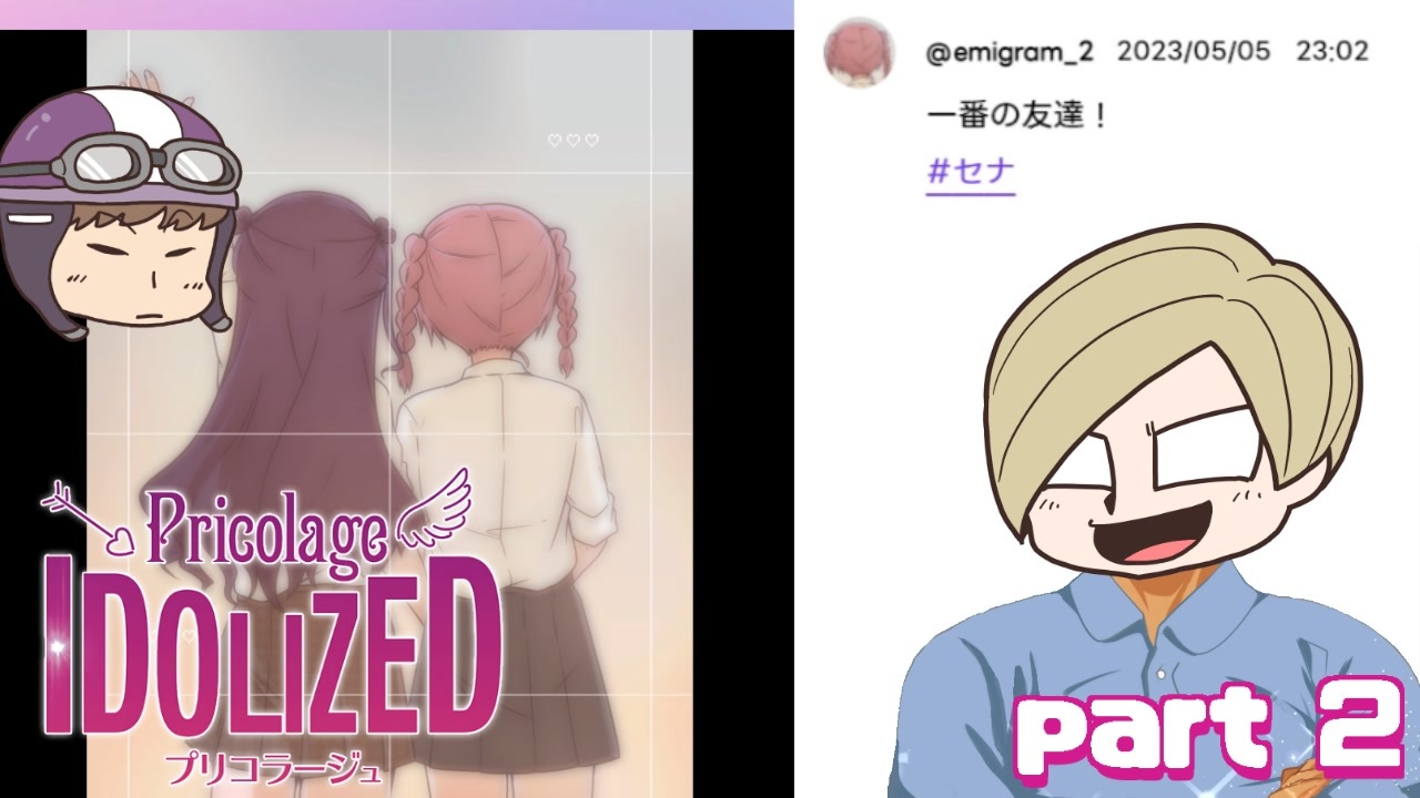 参加メンバー:ショッピ・エーミール<br><br>●パート3→<br>●シリーズリスト→<a href="https://www.nicovideo.jp/series/482574" target="_blank" rel="noopener nofollow">https://www.nicovideo.jp/series/482574</a><br><br><br>本動画にはプリコラージュ -IDOLIZED-のネタバレがあります。気になる方は販売ページへ! ↓ <a href="https://store.steampowered.com/app/2510890/_IDOLIZED/" target="_blank" rel="noopener nofollow">https://store.steampowered.com/app/2510890/_IDOLIZED/</a><br><br>――――――――――――――――――――――――――――――――――<br>「チャンネルの主役は我々だ!」にご入国いただきますと<br>チャンネル会員向けの動画や生放送、ブロマガなどをご覧いただけます。<br>チャンネルの主役は我々だ <a href="http://ch.nicovideo.jp/warewareda" target="_blank" rel="noopener nofollow">http://ch.nicovideo.jp/warewareda</a><br>――――――――――――――――――――――――――――――――――<br>