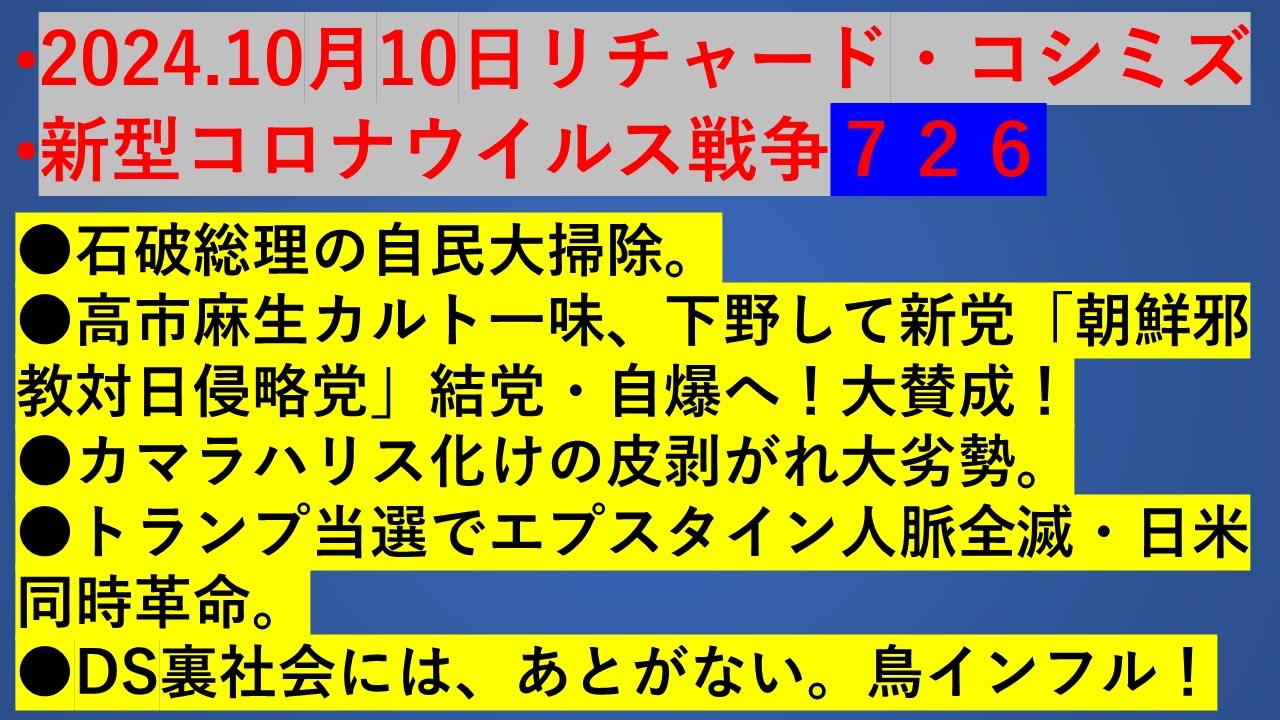 データ詳細 2024.10月10日リチャード・コシミズ•新型コロナウイルス戦争726