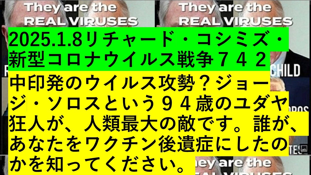 2025.1.8リチャード・コシミズ・新型コロナウイルス戦争742<br>中印発のウイルス攻勢?ジョージ・ソロスという94歳のユダヤ狂人が、人類最大の敵です。誰が、あなたをワクチン後遺症にしたのかを知ってください。<br>