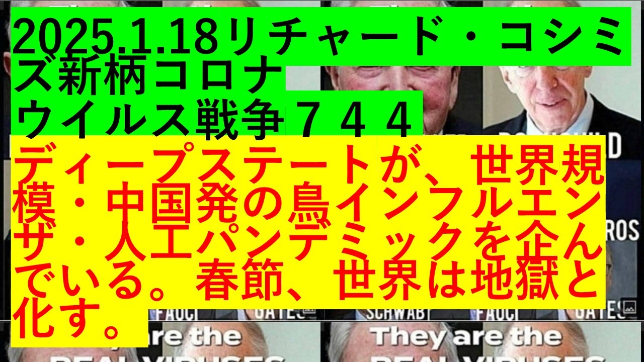 2025.1.18リチャード・コシミズ新型コロナウイルス戦争744<br>ディープステートが、世界規模・中国発の鳥インフルエンザ・人工パンデミックを企んでいる。春節、世界は地獄と化す。<br>