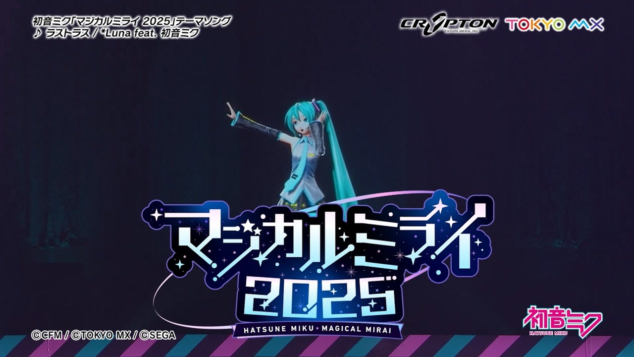 創作で繋がる初音ミクたちのライブと企画展を併催したイベント『初音ミク「マジカルミライ 2025」』の開催告知CM動画です!<br><br>13回目の開催となる今回のイベントテーマは「星河一天(せいがいってん)」!<br>TOKYO・OSAKA、そして「マジカルミライ」では初となるSENDAIを加えた3会場で開催します!<br><br>イベントテーマソングの「ラストラス / *Luna feat. 初音ミク」も少しだけお届けします♪<br><br>・公式WEBサイト: <a href="https://magicalmirai.com/2025/" target="_blank" rel="noopener nofollow">https://magicalmirai.com/2025/</a><br>・公式X:<a href="https://x.com/magicalmirai" target="_blank" rel="noopener nofollow">https://x.com/magicalmirai</a><br><br>---------<br>【初音ミク「マジカルミライ 2025」】<br>ライブ/企画展<br><br>☆ SENDAI ☆ <br>2025年8月1日(金)~3日(日)<br>仙台サンプラザ、仙台駅周辺<br><br>☆ OSAKA ☆ <br>2025年8月9日(土)~11日(月・祝)<br>インテックス大阪 3号館・4号館・5号館A<br><br>☆ TOKYO ☆ <br>2025年8月29日(金)~31日(日)<br>幕張メッセ 国際展示場 9・10・11ホール<br><br>---------<br>【Hatsune Miku “Magical Mirai 2025”】<br>LIVE SHOW/EXHIBITION<br><br>☆ SENDAI ☆<br>August 1st (Fri.) 2025 - August 3rd (Sun.) 2025<br>SENDAI SUNPLAZA, near Sendai Station<br><br>☆ OSAKA ☆ <br>August 9th (Sat.) 2025 - August 11th (Mon.) 2025<br>INTEX Osaka Hall Building 3,4,5A<br><br>☆ TOKYO ☆<br>August 29th (Sat.) 2025 - August 31st (Sun.) 2025<br>Makuhari Messe International Exhibition Hall 9,10,11<br>---------