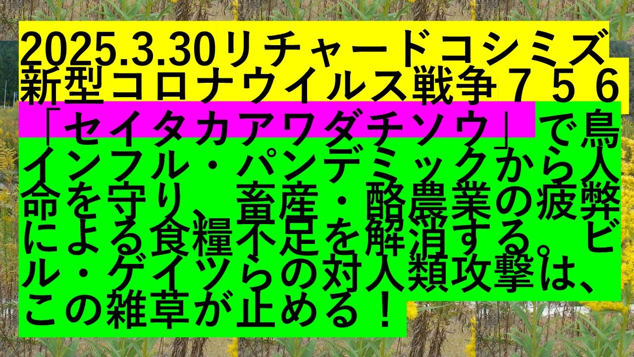 2025.3.30リチャードコシミズ新型コロナウイルス戦争756<br>「セイタカアワダチソウ」で鳥インフル・パンデミックから人命を守り、畜産・酪農業の疲弊による食糧不足を解消する。ビル・ゲイツらの対人類攻撃は、この雑草が止める!<br>