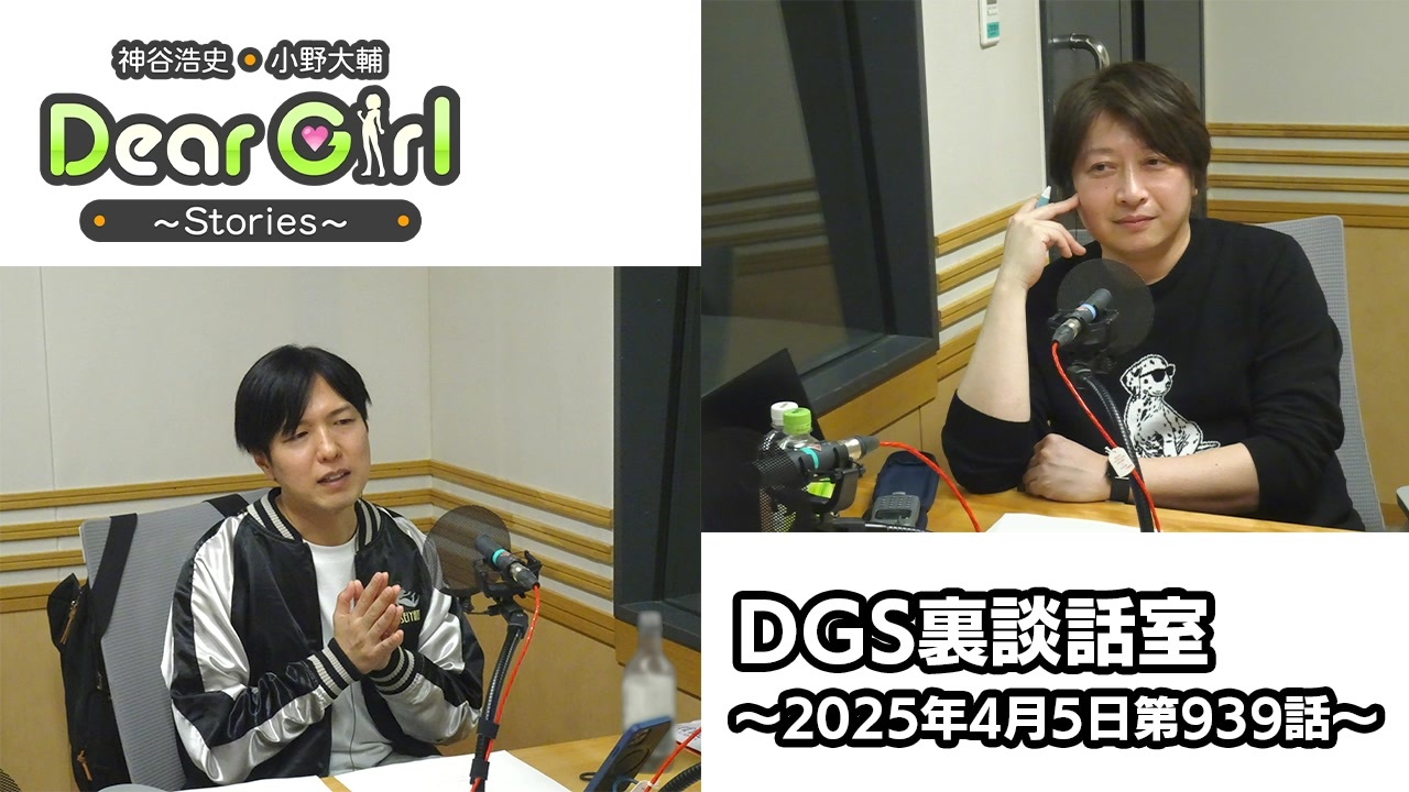 『神谷浩史・小野大輔のDear Girl〜Stories〜』<br>声優・神谷浩史、小野大輔がストーリーテラーとなってラジオの前のたった一人のアナタのために様々なストーリーをお届けするラジオプログラム。<br><br>こちらではDGS本編には収録されていない裏の談話室をお届けします。<br><br>---------- <br><br>スタジオを飛び出してリスナーの住む街に行ってお届けする「アウトドアラジオ」として 実施する番組リスナーファンミーティング「DGS CAMP」を大阪と岩手で開催!<br><br> 現在チケットプレリザーブ受付中!<br>※大阪公演の受付はございません<br>受付期間:2025年4月8日(火)12:00~4月21日(月)23:59<br><br>▼申し込みはこちら!<br> <a href="https://joqrextend.co.jp/dgscamp2025/ticket/" target="_blank" rel="noopener nofollow">https://joqrextend.co.jp/dgscamp2025/ticket/</a><br><br>【「DGS CAMP 2025」イベント概要】<br>タイトル:DGS CAMP 2025<br>出演:神谷浩史、小野大輔<br>■DGS CAMP 2025 in 大阪<br>会場:箕面市立文化芸能劇場 大ホール<br>2025年6月1日(日) 昼公演/夜公演<br>■DGS CAMP 2025 in 岩手<br>会場:奥州市文化会館Zホール<br>2025年6月8日(日) 昼公演/夜公演<br><br>----------<br><br>DGS発のエアバンド「MASOCHISTIC ONO BAND」(MOB)のデビュー10周年を記念したイベント「MASOCHISTIC ONO BAND 10th Anniversary Gasoline Meeting」イベントBlu-rayの発売!<br><br>▼ご購入はこちら!<br><a href="https://extendshop.jp/products/4582494262615" target="_blank" rel="noopener nofollow">https://extendshop.jp/products/4582494262615</a><br><br>----------<br><br><br>・放送日時<br>文化放送 毎週(土)25時〜25時30分<br>ラジオ大阪 毎週(日)23時〜23時30分<br>インターネットサイマルラジオradikoでも聴取可能です。<br><br>・公式Twitter<br><a href="https://twitter.com/uchi_P_" target="_blank" rel="noopener nofollow">https://twitter.com/uchi_P_</a><br><br>・番組メールアドレス<br>dgs@joqr.net<br><br>・番組公式サイト<br><a href="https://pc.animelo.jp/special/deargirl-stories/" target="_blank" rel="noopener nofollow">https://pc.animelo.jp/special/deargirl-stories/</a><br><br><br>