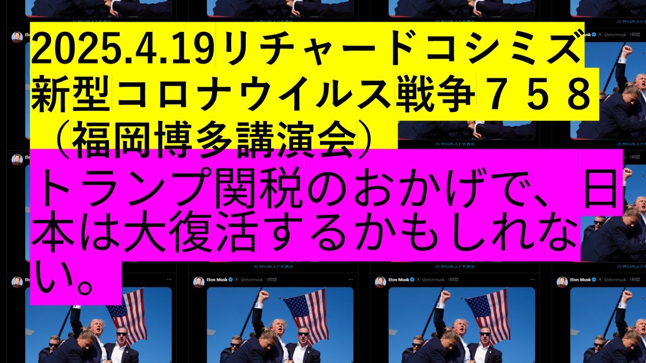2025.4.19リチャードコシミズ新型コロナウイルス戦争758<br>(福岡博多講演会)<br>トランプ関税のおかげで、日本は大復活するかもしれない。<br>