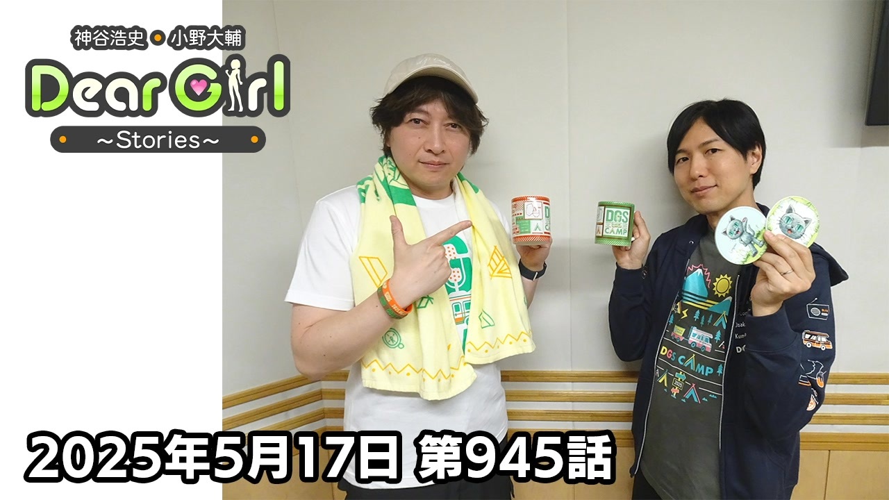 『神谷浩史・小野大輔のDear Girl〜Stories〜』<br>声優・神谷浩史、小野大輔がストーリーテラーとなってラジオの前のたった一人のアナタのために様々なストーリーをお届けするラジオプログラム。<br><br>こちらでは番組アーカイブを無料でお聴きいただけます。<br>今回は、2025年5月17日に文化放送で放送した第945話「神谷さんにTシャツ貰ったよ。やれやれだぜ」をお届けします。是非、最後までお聴きください。<br><br>-----------<br><br>スタジオを飛び出してリスナーの住む街に行ってお届けする「アウトドアラジオ」として 実施する番組リスナーファンミーティング「DGS CAMP」を大阪と岩手で開催! <br>現在チケット申し込み受付中!<br><br>▼チケット情報はこちら!<br> <a href="https://joqrextend.co.jp/dgscamp2025/ticket/" target="_blank" rel="noopener nofollow">https://joqrextend.co.jp/dgscamp2025/ticket/</a> <br><br>---------- <br><br>DGS発のエアバンド「MASOCHISTIC ONO BAND」(MOB)のデビュー10周年を記念したイベント「MASOCHISTIC ONO BAND 10th Anniversary Gasoline Meeting」イベントBlu-rayの発売!<br><br>▼ご購入はこちら!<br><a href="https://extendshop.jp/products/4582494262615" target="_blank" rel="noopener nofollow">https://extendshop.jp/products/4582494262615</a><br><br>----------<br><br><br>番組では皆さんからのお便りお待ちしています。<br><br>・放送日時<br>文化放送 毎週(土)25時〜25時30分<br>ラジオ大阪 毎週(日)23時〜23時30分<br>インターネットサイマルラジオradikoでも聴取可能です。<br><br>・公式Twitter<br><a href="https://twitter.com/uchi_P_" target="_blank" rel="noopener nofollow">https://twitter.com/uchi_P_</a><br><br>・番組メールアドレス<br>dgs@joqr.net<br><br>・番組公式サイト<br><a href="https://pc.animelo.jp/special/deargirl-stories/" target="_blank" rel="noopener nofollow">https://pc.animelo.jp/special/deargirl-stories/</a><br><br><br>