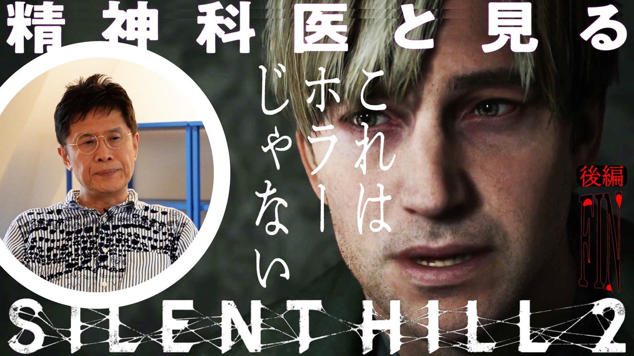 ※※※こちら最終回の"後編"になります!サイズの都合、動画を2分割してます※※※<br>↓前編はこちら<br><a href="https://www.nicovideo.jp/watch/so45078721" target="_blank" rel="noopener nofollow">https://www.nicovideo.jp/watch/so45078721</a><br><br>長らくお送りしてきた本シリーぶも今回でついに最終回です!メアリーが待つ312号室、全ての真相が明らかになります...<br><br>▼「精神科医と見るサイレントヒル2」シリーズ<br>・1話 『サイレントヒル2』主要登場人物たちの性格分析<br>前編 <a href="https://www.nicovideo.jp/watch/so44259111" target="_blank" rel="noopener nofollow">https://www.nicovideo.jp/watch/so44259111</a><br>後編 <a href="https://www.nicovideo.jp/watch/so44259302" target="_blank" rel="noopener nofollow">https://www.nicovideo.jp/watch/so44259302</a><br><br>・2話 市街地編<br><a href="https://www.nicovideo.jp/watch/so44809770" target="_blank" rel="noopener nofollow">https://www.nicovideo.jp/watch/so44809770</a><br><br>・3話 病院探索編<br><a href="https://www.nicovideo.jp/watch/so44836134" target="_blank" rel="noopener nofollow">https://www.nicovideo.jp/watch/so44836134</a><br><br>・5話 裏市街地〜歴史資料館編<br><a href="https://www.nicovideo.jp/watch/so44882402" target="_blank" rel="noopener nofollow">https://www.nicovideo.jp/watch/so44882402</a><br><br>・6話 刑務所編(アンジェラの過去)<br><a href="https://www.nicovideo.jp/watch/so44909347" target="_blank" rel="noopener nofollow">https://www.nicovideo.jp/watch/so44909347</a><br><br>・7話 迷宮通廊 探索編<br><a href="https://www.nicovideo.jp/watch/so45001910" target="_blank" rel="noopener nofollow">https://www.nicovideo.jp/watch/so45001910</a><br><br>・8話 迷宮通廊 脱出編<br><a href="https://www.nicovideo.jp/watch/so45032347" target="_blank" rel="noopener nofollow">https://www.nicovideo.jp/watch/so45032347</a><br><br>・9話 レイクビューホテル編<br><a href="https://www.nicovideo.jp/watch/so45048081" target="_blank" rel="noopener nofollow">https://www.nicovideo.jp/watch/so45048081</a><br><br>===================================<br>▽メンバーシップ登録はこちら💁<br><a href="https://www.youtube.com/channel/UCcTuSuH_yELJQYU6YZUHsAA/join" target="_blank" rel="noopener nofollow">https://www.youtube.com/channel/UCcTuSuH_yELJQYU6YZUHsAA/join</a><br>▽「ゲームさんぽ/よそ見」へのお仕事のご依頼・ご相談はこちら💁<br><a href="https://gamesampo.com/" target="_blank" rel="noopener nofollow">https://gamesampo.com/</a><br>gamesampo@yosomi.co.jp<br>===================================<br><br>【出演者】<br>名越康文(精神科医)<br><a href="https://twitter.com/nakoshiyasufumi" target="_blank" rel="noopener nofollow">https://twitter.com/nakoshiyasufumi</a><br><br>いいだ(よそ見)<br><a href="https://twitter.com/UraIida" target="_blank" rel="noopener nofollow">https://twitter.com/UraIida</a><br>マスダ(ゲーマー)<br><a href="https://twitter.com/game_masuda" target="_blank" rel="noopener nofollow">https://twitter.com/game_masuda</a><br><br>【制作】<br>editor:Akita & Iida & Masuda<br>art direction/design:KANAISASAKI<br>op motion design:Hiromu Oka<br>op music:Hercelot<br><br>===================================<br><br><ところでゲームさんぽって...?><br>いろんな人と一緒にゲームをやって、視点の違い、もっと言えば世界の見え方の違いっぷりを楽しむ動画シリーズです。<br><br>よければ発案者である「なむ」さんのサイトにもお参りして、企画の歴史を辿ってみてね!<br><a href="https://www.saynum.com/" target="_blank" rel="noopener nofollow">https://www.saynum.com/</a><br>