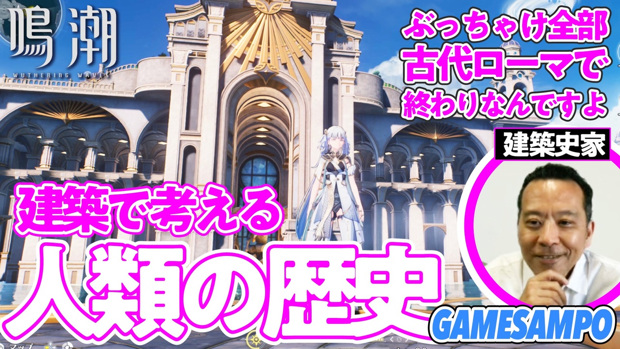 久しぶりの建築さんぽ!今回は『鳴潮』のリナシータを舞台に、おそらくルネサンスをかなり意識した建築群で古代から現代まで2000年に渡る人類の営みを読み解きます。キャラ名がデカルト由来なのでは?という中盤の話も必見。これが人文学のオモロさや……!(いいだ)<br><br>プロモーション:鳴潮 <br>ーーーーーーーーーーーーーー <br>▼DLはこちらから <br><a href="https://wuwa.kurogames-global.com/4jR0Vjq" target="_blank" rel="noopener nofollow">https://wuwa.kurogames-global.com/4jR0Vjq</a> <br><br>▼関連サイト 【鳴潮公式サイト】 <br><a href="https://wutheringwaves.kurogames.com/jp/main" target="_blank" rel="noopener nofollow">https://wutheringwaves.kurogames.com/jp/main</a> <br>【鳴潮公式X】 <br><a href="https://twitter.com/WW_JP_Official" target="_blank" rel="noopener nofollow">https://twitter.com/WW_JP_Official</a> <br>【鳴潮公式チャンネル登録】 <br><a href="https://www.youtube.com/@wutheringwaves3352" target="_blank" rel="noopener nofollow">https://www.youtube.com/@wutheringwaves3352</a><br><br>*<br><br>00:00 OP ゲーム紹介<br>02:02 ルネサンス概論/ブルネレスキについて<br>07:37 ラグーナ城/ヴェネツィア/16世紀の「理想都市」<br>12:26 ルネサンスとバロックの違い<br>16:16 現代社会の生きづらさは「ルネサンスのおかげ」<br>18:32 カルテジアはデカルト(哲学者)由来?<br>22:11 セブンヒルズ=ローマ<br>29:09 コロッセオの構造と「人間中心主義」<br><br>===================================<br>▽メンバーシップ登録はこちら💁<br><a href="https://www.youtube.com/channel/UCcTuSuH_yELJQYU6YZUHsAA/join" target="_blank" rel="noopener nofollow">https://www.youtube.com/channel/UCcTuSuH_yELJQYU6YZUHsAA/join</a><br>▽「ゲームさんぽ/よそ見」へのお仕事のご依頼・ご相談はこちら💁<br><a href="https://gamesampo.com/" target="_blank" rel="noopener nofollow">https://gamesampo.com/</a><br>gamesampo@yosomi.co.jp<br>===================================<br><br>【出演者】<br>倉方俊輔(建築史家)<br><a href="https://x.com/kurakataa" target="_blank" rel="noopener nofollow">https://x.com/kurakataa</a><br>いいだ(よそ見)<br><a href="https://twitter.com/UraIida" target="_blank" rel="noopener nofollow">https://twitter.com/UraIida</a><br>すまほエルフ(古代尺八演奏家)<br><a href="https://x.com/Hagre_Elf" target="_blank" rel="noopener nofollow">https://x.com/Hagre_Elf</a><br><br>【制作】<br>editor:Kawanobe & Iida<br>art direction/design:KANAISASAKI<br>op motion design:Hiromu Oka<br>op music:Hercelot<br><br>===================================<br><br><ところでゲームさんぽって...?><br>いろんな人と一緒にゲームをやって、視点の違い、もっと言えば世界の見え方の違いっぷりを楽しむ動画シリーズです。<br><br>よければ発案者である「なむ」さんのサイトにもお参りして、企画の歴史を辿ってみてね!<br><a href="https://www.saynum.com/" target="_blank" rel="noopener nofollow">https://www.saynum.com/</a><br>