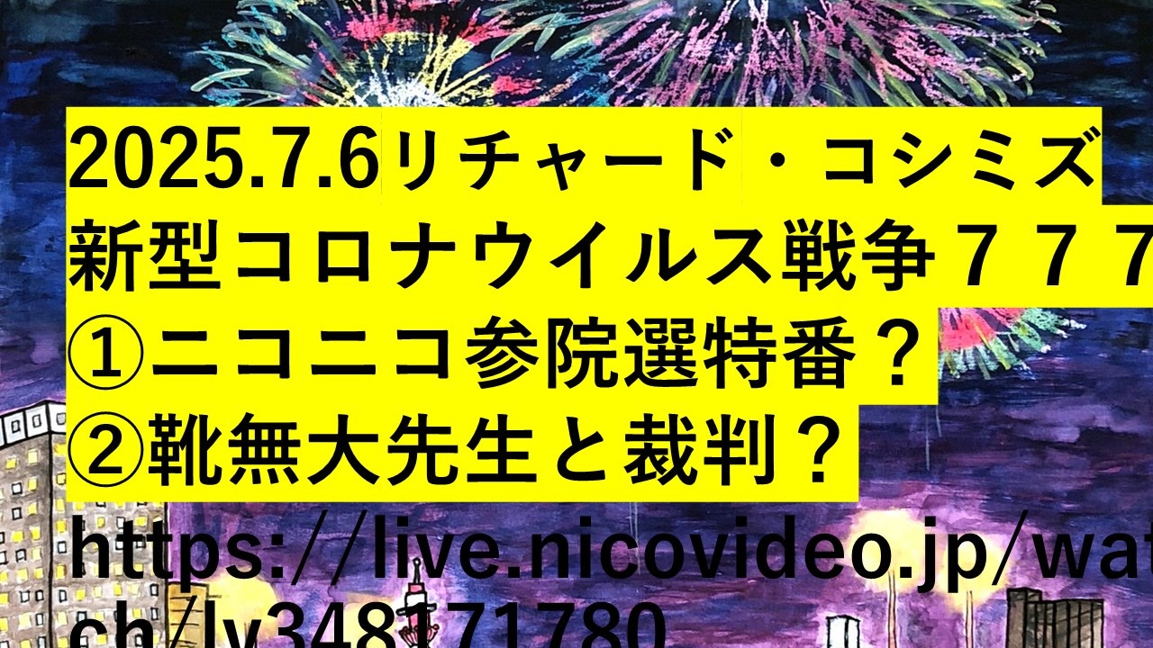 2025.7.6リチャード・コシミズ新型コロナウイルス戦争777<br>①ニコニコ参院選特番?<br>②靴無大先生と裁判?<br>