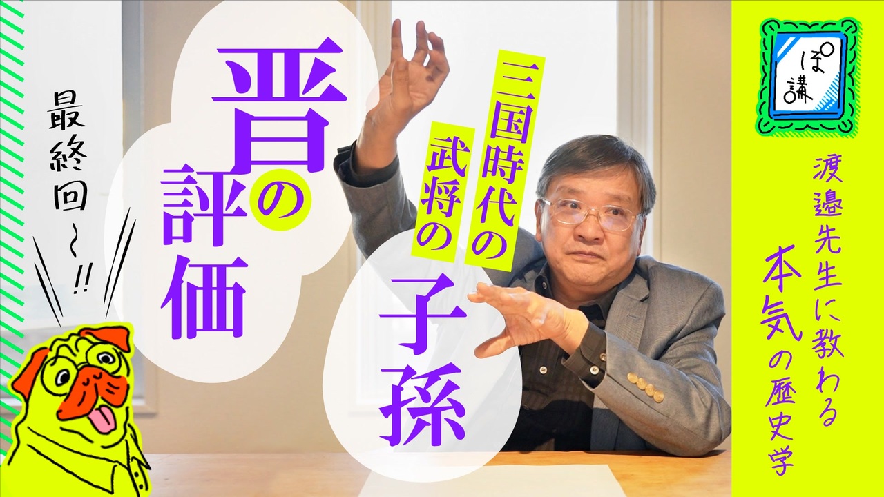 今回で最終回となる渡邉先生による本気の歴史学講座。<br>最終回では三国時代の武将の末裔たちのその後や、晋という時代の最終的な評価についてお聞きしていきます〜<br><br>※この動画冒頭のあらすじ説明で流れる音声は音読さんを使用しています。<br><br>▼レジュメはこちら!(第5回、第6回分)<br>②三国志の後の時代である「晋(西晋、東晋)」「五胡十六国時代」<br>L1.晋の始まり、2.晋の終わり、3.後世に紡がれた制度・思想、4.三国志で活躍した武将<br>たちの子孫たちのその後(劉禅、孫氏、曹氏)、5.時代の評価etc・・・<br><br>1.晋の始まり<br>後漢「儒教国家」の限界から生まれた三国、曹操だけではなく諸葛亮も法を重視。<br>あくまで漢の枠組みを尊重した諸葛亮と、時代の変革者曹操<br>曹操への反発を束ねた司馬氏「諸生の家」<br>西晉「儒教国家」<br>泰始律令は法源を儒教経典 ← 秦は君主、鄭玄は律令にも注<br>三大柱~井田(占田・課田法→?均田制)、学校(太學・國子學)、封建→八王の乱<br><br>2.晋の終わり<br>永嘉の乱で西晉を滅ぼすのは、漢(前趙、劉淵・聡、匈奴)<br>『三国志平話』(元)漢帝(劉禅)の外孫である劉淵は北方へ逃れ、平陽で漢を再興、<br>晉を滅ぼす。モンゴル系匈奴=漢=元というイデオロギー操作。<br><br>東晉を滅ぼした劉裕(宋)は、仏教の讖緯書を利用、五胡を統一した北魏は、仏教保護と道教の国教化。儒教は衰退?「古典中国」として制度や社会の根底に残存。孝でないと「士」から除名。『父母恩重経』などの偽済。木主→位牌<br><br>3.後世に紡がれた制度・思想<br>隋唐の律令体制の源流。直接的な起源は北魏。<br>儒教一尊から四学(儒・玄・史・文)三教(儒・仏・道)へ。儒が尊重されないと<br>概論的には言うが、双方に儒が入るように、儒は基礎教養に。<br><br>4.三国志で活躍した武将たちの子孫たちのその後(劉禅、孫氏、曹氏)<br>曹奐(曹粲が蕭道成の勧進文中に名)・劉禅(劉淵は、匈奴と漢氏とは甥の関係であ<br>るとし、劉禅を孝懐皇帝と追尊)・孫晧(司馬炎をやり込める汝の歌)は西晉が保護。<br>諸葛都護(諸葛瞻)の乱(268年、王富)。<br>成漢(304成、天師道の范長生→338 漢、弱体化、347滅亡)。<br>二陸(陸機・陸雲、陸遜の孫)陸機「詩縁情」←曹操「詩言志」<br><br>5.時代の評価<br>漢の「大一統」の無力化<br>華夷の崩壊(平均気温の低下)、仏教(反発としての道教)の台頭<br>→唐の「大一統」までの生みの苦しみの始まり<br><br>▼ぽ講中国史シリーズ<br>・第1回「漢の全体像と時代区分」<br><a href="https://www.nicovideo.jp/watch/so44862409" target="_blank" rel="noopener nofollow">https://www.nicovideo.jp/watch/so44862409</a><br><br>・第2回「漢の統治者と制度の評価」<br><a href="https://www.nicovideo.jp/watch/so44909053" target="_blank" rel="noopener nofollow">https://www.nicovideo.jp/watch/so44909053</a><br><br>・第3回「王莽と三国時代の武将の先祖たち」<br><a href="https://www.nicovideo.jp/watch/so44959978" target="_blank" rel="noopener nofollow">https://www.nicovideo.jp/watch/so44959978</a><br><br>・第4回「漢の終わりと時代の評価」<br><a href="https://www.nicovideo.jp/watch/so45011150" target="_blank" rel="noopener nofollow">https://www.nicovideo.jp/watch/so45011150</a><br><br>・第5回「晋の始まりと終わり、台頭する宗教」<br><a href="https://www.nicovideo.jp/watch/so45119283" target="_blank" rel="noopener nofollow">https://www.nicovideo.jp/watch/so45119283</a><br><br>▼その他「ぽ講」シリーズ<br>精神科医と考える、身近な人の「死」の受け入れ方|ぽ講001<br><a href="https://www.nicovideo.jp/watch/so44814270" target="_blank" rel="noopener nofollow">https://www.nicovideo.jp/watch/so44814270</a><br><br>《橋の良さみ入門 #01》橋の風景の読み方|ぽ講006<br><a href="https://www.nicovideo.jp/watch/so45076929" target="_blank" rel="noopener nofollow">https://www.nicovideo.jp/watch/so45076929</a><br>
