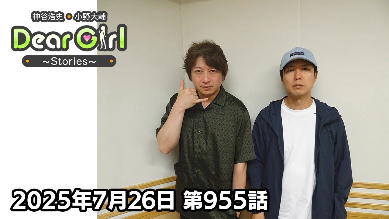 『神谷浩史・小野大輔のDear Girl〜Stories〜』<br>声優・神谷浩史、小野大輔がストーリーテラーとなってラジオの前のたった一人のアナタのために様々なストーリーをお届けするラジオプログラム。<br><br>こちらでは番組アーカイブを無料でお聴きいただけます。<br>今回は、2025年7月26日に文化放送で放送した第955話「おじさんリハ疲れ中」をお届けします。是非、最後までお聴きください。<br><br>-----------<br><br> スタジオを飛び出してリスナーの住む街に行ってお届けする「アウトドアラジオ」として 実施する番組リスナーファンミーティング「DGS CAMP」を大阪、岩手、熊本で開催! <br>▼現在熊本公演チケット一般発売中!<br><a href="https://joqrextend.co.jp/dgscamp2025/news/414/" target="_blank" rel="noopener nofollow">https://joqrextend.co.jp/dgscamp2025/news/414/</a><br><br>---------- <br><br>DGS発のエアバンド「MASOCHISTIC ONO BAND」(MOB)のデビュー10周年を記念したイベント「MASOCHISTIC ONO BAND 10th Anniversary Gasoline Meeting」イベントBlu-rayの発売!<br><br>▼ご購入はこちら!<br><a href="https://extendshop.jp/products/4582494262615" target="_blank" rel="noopener nofollow">https://extendshop.jp/products/4582494262615</a><br><br>----------<br><br><br>番組では皆さんからのお便りお待ちしています。<br><br>・放送日時<br>文化放送 毎週(土)25時〜25時30分<br>ラジオ大阪 毎週(日)23時〜23時30分<br>インターネットサイマルラジオradikoでも聴取可能です。<br><br>・公式Twitter<br><a href="https://twitter.com/uchi_P_" target="_blank" rel="noopener nofollow">https://twitter.com/uchi_P_</a><br><br>・番組メールアドレス<br>dgs@joqr.net<br><br>・番組公式サイト<br><a href="https://pc.animelo.jp/special/deargirl-stories/" target="_blank" rel="noopener nofollow">https://pc.animelo.jp/special/deargirl-stories/</a><br><br><br>