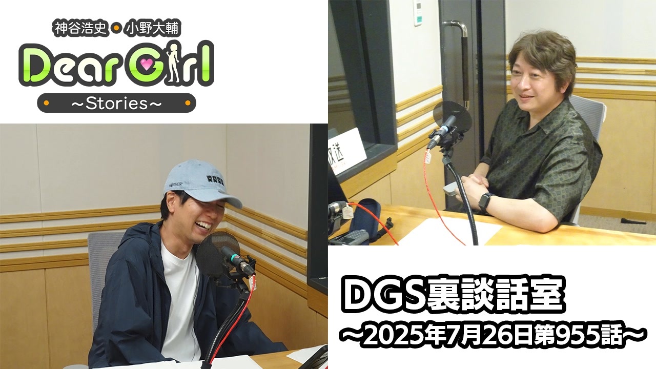 『神谷浩史・小野大輔のDear Girl〜Stories〜』<br>声優・神谷浩史、小野大輔がストーリーテラーとなってラジオの前のたった一人のアナタのために様々なストーリーをお届けするラジオプログラム。<br><br>こちらではDGS本編には収録されていない裏の談話室をお届けします。<br><br>---------- <br><br> スタジオを飛び出してリスナーの住む街に行ってお届けする「アウトドアラジオ」として 実施する番組リスナーファンミーティング「DGS CAMP」を大阪、岩手、熊本で開催! <br>▼現在熊本公演チケット一般発売中!<br> <a href="https://joqrextend.co.jp/dgscamp2025/news/414/" target="_blank" rel="noopener nofollow">https://joqrextend.co.jp/dgscamp2025/news/414/</a><br><br>----------<br><br>DGS発のエアバンド「MASOCHISTIC ONO BAND」(MOB)のデビュー10周年を記念したイベント「MASOCHISTIC ONO BAND 10th Anniversary Gasoline Meeting」イベントBlu-rayの発売!<br><br>▼ご購入はこちら!<br><a href="https://extendshop.jp/products/4582494262615" target="_blank" rel="noopener nofollow">https://extendshop.jp/products/4582494262615</a><br><br>----------<br><br><br>・放送日時<br>文化放送 毎週(土)25時〜25時30分<br>ラジオ大阪 毎週(日)23時〜23時30分<br>インターネットサイマルラジオradikoでも聴取可能です。<br><br>・公式Twitter<br><a href="https://twitter.com/uchi_P_" target="_blank" rel="noopener nofollow">https://twitter.com/uchi_P_</a><br><br>・番組メールアドレス<br>dgs@joqr.net<br><br>・番組公式サイト<br><a href="https://pc.animelo.jp/special/deargirl-stories/" target="_blank" rel="noopener nofollow">https://pc.animelo.jp/special/deargirl-stories/</a><br><br><br>