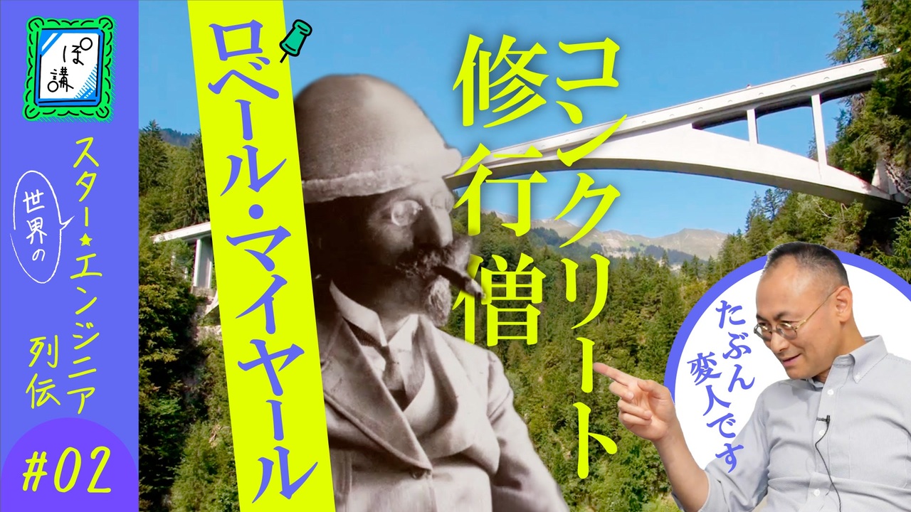 <br>《橋の良さみ入門》<br>#01 橋の風景の読み方<br><a href="https://www.nicovideo.jp/watch/so45076929" target="_blank" rel="noopener nofollow">https://www.nicovideo.jp/watch/so45076929</a><br>#02 橋と物理と政治学<br><a href="https://www.nicovideo.jp/watch/so45101307" target="_blank" rel="noopener nofollow">https://www.nicovideo.jp/watch/so45101307</a><br>#03 素材と構造形式<br><a href="https://www.nicovideo.jp/watch/so45101314" target="_blank" rel="noopener nofollow">https://www.nicovideo.jp/watch/so45101314</a><br><br>《スーパースターエンジニア烈伝》<br>#01 日本の土木の父たちとI・K・ブルネル<br><a href="https://www.nicovideo.jp/watch/so45194353" target="_blank" rel="noopener nofollow">https://www.nicovideo.jp/watch/so45194353</a><br>#02 PCアーチ橋の修行僧! ロベール・マイヤール<br>#03 Theアーティスト!サンティアゴ・カラトラバ<br>#04 軽量構造の魔術師! ヨルク・シュライヒ<br>#05 構造の詩人! ローラン・ネイ<br><br>▼その他、ぽ講シリーズはこちら〜<br>・渡邉先生による中国史シリーズ(全6回)<br><a href="https://www.nicovideo.jp/watch/so44862409" target="_blank" rel="noopener nofollow">https://www.nicovideo.jp/watch/so44862409</a><br><a href="https://www.nicovideo.jp/watch/so44909053" target="_blank" rel="noopener nofollow">https://www.nicovideo.jp/watch/so44909053</a><br><a href="https://www.nicovideo.jp/watch/so44959978" target="_blank" rel="noopener nofollow">https://www.nicovideo.jp/watch/so44959978</a><br><a href="https://www.nicovideo.jp/watch/so45011150" target="_blank" rel="noopener nofollow">https://www.nicovideo.jp/watch/so45011150</a><br><br>・精神科医と考える、身近な人の「死」の受け入れ方|ぽ講001<br><a href="https://www.nicovideo.jp/watch/so44814270" target="_blank" rel="noopener nofollow">https://www.nicovideo.jp/watch/so44814270</a><br>