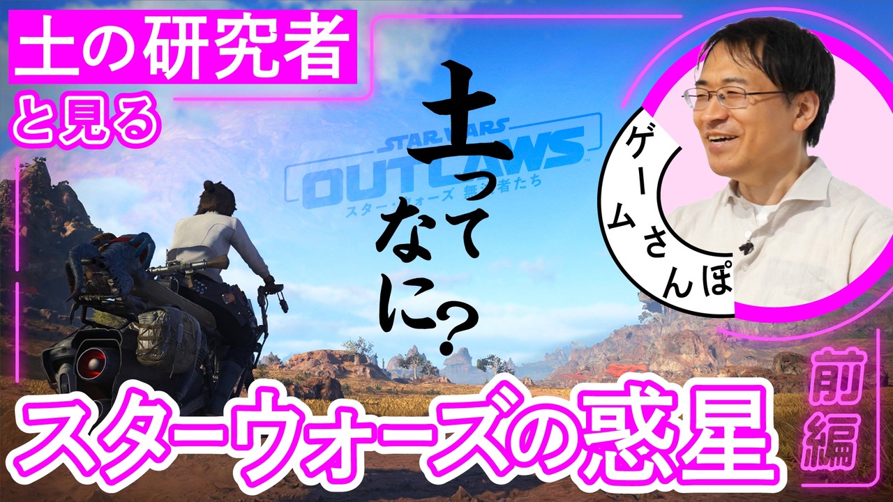 プロモーション:スターウォーズ 無法者たち(Ubisoft)<br><br>今回は『スターウォーズ 無法者たち』を土の研究者である藤井一至さんと一緒にプレイ!前編ではトーシャーラとアキヴァ2つの惑星の土壌について見ていきます〜。土の研究者に未知の惑星の土はどう映るのか?お楽しみに!<br><br>▽ゲーム情報<br>『スター・ウォーズ 無法者たち』のDLC第2弾「A Pirate’s Fortune」ストーリーパックが現在発売中!<br>また、Switch 2版が2025年9月4日に発売開始!<br><a href="https://www.ubisoft.com/ja-jp/game/star-wars/outlaws" target="_blank" rel="noopener nofollow">https://www.ubisoft.com/ja-jp/game/star-wars/outlaws</a><br><br>その他にも、無料体験版が対応する各プラットフォームにて配信中なのでぜひプレイしてみてください〜!<br>#StarWarsOutlaws #StarWars #Ubisoft<br><br>===================================<br>▽メンバーシップ登録はこちら💁<br><a href="https://www.youtube.com/channel/UCcTuSuH_yELJQYU6YZUHsAA/join" target="_blank" rel="noopener nofollow">https://www.youtube.com/channel/UCcTuSuH_yELJQYU6YZUHsAA/join</a><br>▽「ゲームさんぽ/よそ見」へのお仕事のご依頼・ご相談はこちら💁<br><a href="https://gamesampo.com/" target="_blank" rel="noopener nofollow">https://gamesampo.com/</a><br>gamesampo@yosomi.co.jp<br>===================================<br><br>【出演者】<br>藤井一至(土の研究者)<br><a href="https://x.com/virtualsoil" target="_blank" rel="noopener nofollow">https://x.com/virtualsoil</a><br><br>いいだ(よそ見)<br><a href="https://twitter.com/UraIida" target="_blank" rel="noopener nofollow">https://twitter.com/UraIida</a><br>マスダ(ゲーマー)<br><a href="https://twitter.com/game_masuda" target="_blank" rel="noopener nofollow">https://twitter.com/game_masuda</a><br><br>【制作】<br>editor:Kawanobe & Iida & Masuda<br>art direction/design:KANAISASAKI<br>op motion design:Hiromu Oka<br>op music:Hercelot<br><br>===================================<br><br><ところでゲームさんぽって...?><br>いろんな人と一緒にゲームをやって、視点の違い、もっと言えば世界の見え方の違いっぷりを楽しむ動画シリーズです。<br><br>よければ発案者である「なむ」さんのサイトにもお参りして、企画の歴史を辿ってみてね!<br><a href="https://www.saynum.com/" target="_blank" rel="noopener nofollow">https://www.saynum.com/</a>