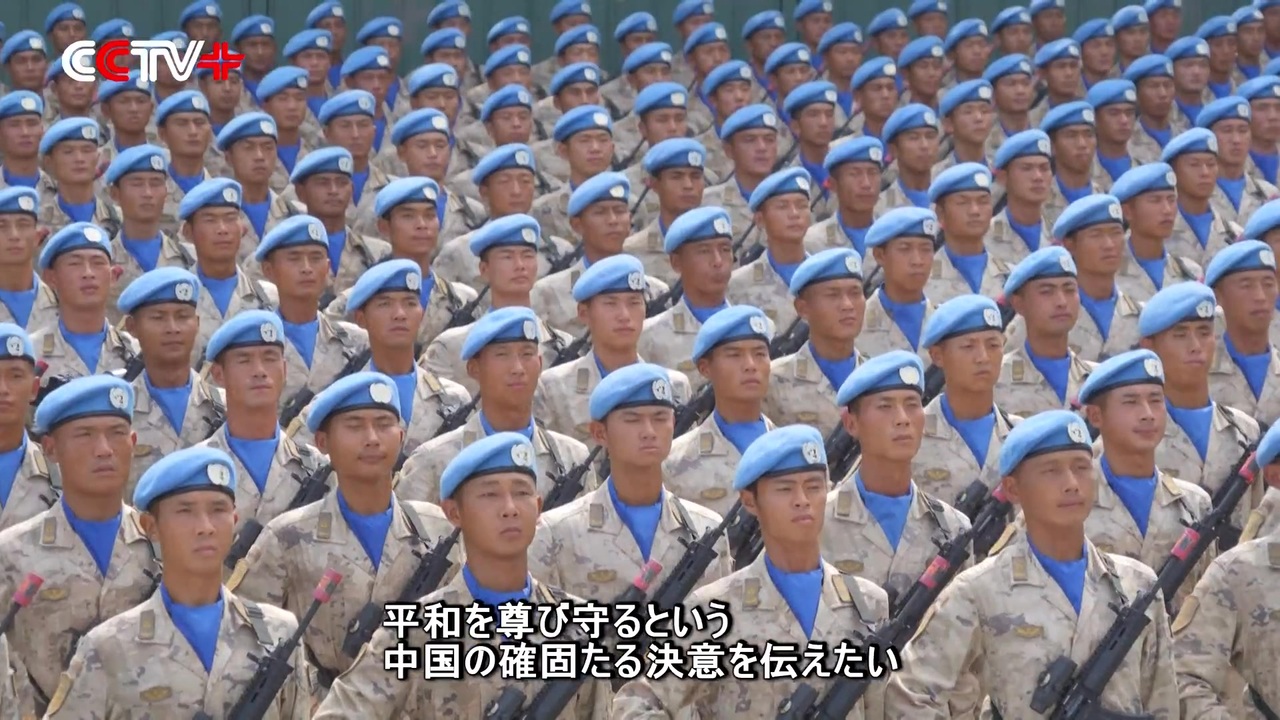 中国人民抗日戦争・世界反ファシズム戦争勝利80周年記念大会が9月3日に天安門広場で行われる。<br><br> 大会での軍事パレードに臨む中国の国連平和維持部隊は、世界平和を守るという中国の確固たるコミットメントを示したいと、厳しい訓練に励んでいる。<br><br> 平和維持部隊の隊列に参加するのは、中国人民解放軍の各部隊から選ばれ、南スーダン、レバノン、リベリア、コンゴ民主共和国、マリなどで国連平和維持任務を遂行してきた隊員だ。<br><br> <平和維持部隊隊列 左嵩隊列長><br> 「平和維持部隊の軍事パレードへの参加は、抗日戦争勝利への厳かな記念であると同時に、義務を果たし世界平和を守るという中国の責任感の現れでもある。平和維持部隊の代表として、崇高な使命を心に刻み、厳しい訓練を重ねて細部にまで磨きをかけ、一流の水準と堅実な風格で中国の『ブルーヘルメット』の姿を示し、平和を尊び守るという中国の確固たる決意を伝えたい」<br><br> 中国の「ブルーヘルメット」は国連平和維持活動において極めて重要な力となっている。中国は1990年から参加、35年間で延べ5万人以上の隊員が20以上の国・地域に派遣され、重要な役割を果たしている。<br><br> 今回のパレードに参加する平和維持部隊隊列は、海外で任務遂行中の隊員を代表し、祖国と人民による検閲を受ける準備ができている。力強い足取りで、平和維持部隊のメンバーとしての誇りと、新時代における大国の風格を世界に示す決意だ。<br><br> <平和維持部隊隊列 秦慶新隊員><br> 「中国の革命精神の継承者として、まもなく我々は天安門広場を行進し、党と人民による検閲を受ける。最も意気軒昂な姿勢で烈士を慰め、新時代における中国軍隊の姿を示すとともに、革命先人たちの果敢に戦う精神を受け継ぎ、強軍・興軍建設に自らの力で貢献すべきだ」