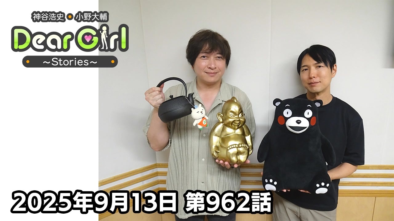 『神谷浩史・小野大輔のDear Girl〜Stories〜』<br>声優・神谷浩史、小野大輔がストーリーテラーとなってラジオの前のたった一人のアナタのために様々なストーリーをお届けするラジオプログラム。<br><br>こちらでは番組アーカイブを無料でお聴きいただけます。<br>今回は、2025年9月13日に文化放送で放送した第962話「なんでスタジオの外にビリケンいるの?」をお届けします。是非、最後までお聴きください。<br><br>-----------<br><br>DGS CAMP 2025 in熊本公演で販売したご当地限定商品を含むグッズについて事後通販&受注販売予約を実施! <br>受注販売受付期間:2025年9月12日(金)17時〜9月23日(火)23時59分<br><a href="https://extendshop.jp/" target="_blank" rel="noopener nofollow">https://extendshop.jp/</a><br><br>DGS CAMP 2025くじ 熊本ver.事後通販を「エクステンドくじ」にて販売中!<br>販売期間:2025年9月10日(水)17時〜9月23日(火)23時59分 <br>(予定数に達した場合、早期終了する場合があります。予めご了承ください。)<br><a href="https://kuji.extendshop.jp/store" target="_blank" rel="noopener nofollow">https://kuji.extendshop.jp/store</a><br> <br>---------- <br><br>DGS発のエアバンド「MASOCHISTIC ONO BAND」(MOB)のデビュー10周年を記念したイベント「MASOCHISTIC ONO BAND 10th Anniversary Gasoline Meeting」イベントBlu-rayの発売!<br><br>▼ご購入はこちら!<br><a href="https://extendshop.jp/products/4582494262615" target="_blank" rel="noopener nofollow">https://extendshop.jp/products/4582494262615</a><br><br>----------<br><br><br>番組では皆さんからのお便りお待ちしています。<br><br>・放送日時<br>文化放送 毎週(土)25時〜25時30分<br>ラジオ大阪 毎週(日)23時〜23時30分<br>インターネットサイマルラジオradikoでも聴取可能です。<br><br>・公式Twitter<br><a href="https://twitter.com/uchi_P_" target="_blank" rel="noopener nofollow">https://twitter.com/uchi_P_</a><br><br>・番組メールアドレス<br>dgs@joqr.net<br><br>・番組公式サイト<br><a href="https://pc.animelo.jp/special/deargirl-stories/" target="_blank" rel="noopener nofollow">https://pc.animelo.jp/special/deargirl-stories/</a><br><br><br>