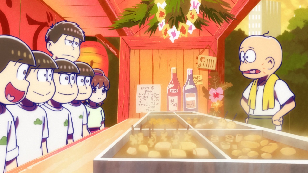 いつでもおいしいおでんが食べられてツケもきくみんなの憩いの場、チビ太のおでん屋台。気付けば昔馴染みが集まっているチビ太の屋台だが、その日はどこか、いつもと様子が違っていて――。<br><br>おそ松:櫻井 孝宏/カラ松:中村 悠一/チョロ松:神谷 浩史/一松:福山 潤/十四松:小野 大輔/トド松:入野 自由/トト子:遠藤 綾/イヤミ:鈴村 健一/チビ太:國立 幸/デカパン:上田 燿司/ダヨーン:飛田 展男/ハタ坊:斎藤 桃子/松造:井上 和彦/松代:くじら ほか<br><br>監督:小高 義規/シリーズ構成:松原 秀/キャラクターデザイン・総作画監督:安彦 英二/総作画監督:渡邊 葉瑠、和田 佳純/副監督:二村 寧々/美術監督:田村 せいき/色彩設計:垣田 由紀子/撮影監督:福士 享/撮影副監督:大泉 鉱/編集:坂本 久美子/音楽:橋本 由香利/音楽制作:エイベックス・ピクチャーズ/音楽協力:テレビ東京ミュージック/音響監督:菊田 浩巳/音響制作:楽音舎/アニメーション制作:PIERROT FILMS<br><br>©赤塚不二夫/おそ松さん製作委員会<br><br><a href="https://www.nicovideo.jp/watch/so45419156" class="watch">so45419156</a>←前話|次話→<a href="https://www.nicovideo.jp/watch/so45472503" class="watch">so45472503</a> 第一話→<a href="https://www.nicovideo.jp/watch/so45175192" class="watch">so45175192</a>