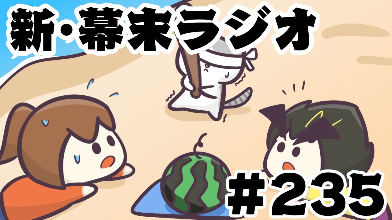 新・幕末ラジオ 2025年8月16日(土)放送分<br><br>1,なにやってんだ坂本ぉ!!:<a href="#" class="seekTime" data-seekTime="0:01" onclick="seekNicoPlayer('#0:01'); return false;">#0:01</a><br>2,土曜はAPEXの大会:<a href="#" class="seekTime" data-seekTime="20:50" onclick="seekNicoPlayer('#20:50'); return false;">#20:50</a><br>3,木曜日にコラボ:<a href="#" class="seekTime" data-seekTime="33:33" onclick="seekNicoPlayer('#33:33'); return false;">#33:33</a><br>4,会員プレゼント:<a href="#" class="seekTime" data-seekTime="34:39" onclick="seekNicoPlayer('#34:39'); return false;">#34:39</a><br>5,放送次第:<a href="#" class="seekTime" data-seekTime="35:28" onclick="seekNicoPlayer('#35:28'); return false;">#35:28</a><br>6,中岡のお盆休み:<a href="#" class="seekTime" data-seekTime="37:27" onclick="seekNicoPlayer('#37:27'); return false;">#37:27</a><br>7,坂本のお盆休み:<a href="#" class="seekTime" data-seekTime="52:00" onclick="seekNicoPlayer('#52:00'); return false;">#52:00</a><br>8,ヤツらの夏休み:<a href="#" class="seekTime" data-seekTime="73:13" onclick="seekNicoPlayer('#73:13'); return false;">#73:13</a><br><br>←第234回 第236回→<br>(会員限定)新幕末ラジオマイリスト:<a href="https://www.nicovideo.jp/mylist/78814077" target="_blank" rel="noopener">mylist/78814077</a><br>(会員限定)旧幕末ラジオマイリスト:<a href="https://www.nicovideo.jp/mylist/55616469" target="_blank" rel="noopener">mylist/55616469</a><br><br>更新情報(Twitter) → <a href="https://twitter.com/kirizaki_ei" target="_blank" rel="noopener nofollow">https://twitter.com/kirizaki_ei</a><br>ゲーム実況まとめ : <a href="https://www.nicovideo.jp/mylist/8299531" target="_blank" rel="noopener">mylist/8299531</a><br>単発動画まとめ : <a href="https://www.nicovideo.jp/mylist/10539272" target="_blank" rel="noopener">mylist/10539272</a><br>生放送まとめ : <a href="https://www.nicovideo.jp/mylist/53482635" target="_blank" rel="noopener">mylist/53482635</a><br>幕末志士チャンネル : <a href="https://ch.nicovideo.jp/bakumatsu" target="_blank" rel="noopener">ch.nicovideo.jp/bakumatsu</a><br>