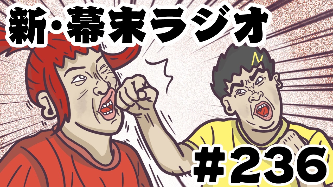 新・幕末ラジオ 2025年8月24日(日)放送分<br><br>1,まだ捕まってねぇのか:<a href="#" class="seekTime" data-seekTime="0:01" onclick="seekNicoPlayer('#0:01'); return false;">#0:01</a><br>2,会員プレゼント:<a href="#" class="seekTime" data-seekTime="7:19" onclick="seekNicoPlayer('#7:19'); return false;">#7:19</a><br>3,無能の善意:<a href="#" class="seekTime" data-seekTime="17:24" onclick="seekNicoPlayer('#17:24'); return false;">#17:24</a><br>4,放送次第:<a href="#" class="seekTime" data-seekTime="31:01" onclick="seekNicoPlayer('#31:01'); return false;">#31:01</a><br>5,中岡への頼み:<a href="#" class="seekTime" data-seekTime="31:44" onclick="seekNicoPlayer('#31:44'); return false;">#31:44</a><br>6,坂本と中岡大奮闘!(ハセまつり):<a href="#" class="seekTime" data-seekTime="43:54" onclick="seekNicoPlayer('#43:54'); return false;">#43:54</a><br>7,中岡コーナー「おい、坂本ふざけるなよ!」:<a href="#" class="seekTime" data-seekTime="67:22" onclick="seekNicoPlayer('#67:22'); return false;">#67:22</a><br><br>←第235回 第237回→<br>(会員限定)新幕末ラジオマイリスト:<a href="https://www.nicovideo.jp/mylist/78814077" target="_blank" rel="noopener">mylist/78814077</a><br>(会員限定)旧幕末ラジオマイリスト:<a href="https://www.nicovideo.jp/mylist/55616469" target="_blank" rel="noopener">mylist/55616469</a><br><br>更新情報(Twitter) → <a href="https://twitter.com/kirizaki_ei" target="_blank" rel="noopener nofollow">https://twitter.com/kirizaki_ei</a><br>ゲーム実況まとめ : <a href="https://www.nicovideo.jp/mylist/8299531" target="_blank" rel="noopener">mylist/8299531</a><br>単発動画まとめ : <a href="https://www.nicovideo.jp/mylist/10539272" target="_blank" rel="noopener">mylist/10539272</a><br>生放送まとめ : <a href="https://www.nicovideo.jp/mylist/53482635" target="_blank" rel="noopener">mylist/53482635</a><br>幕末志士チャンネル : <a href="https://ch.nicovideo.jp/bakumatsu" target="_blank" rel="noopener">ch.nicovideo.jp/bakumatsu</a><br>