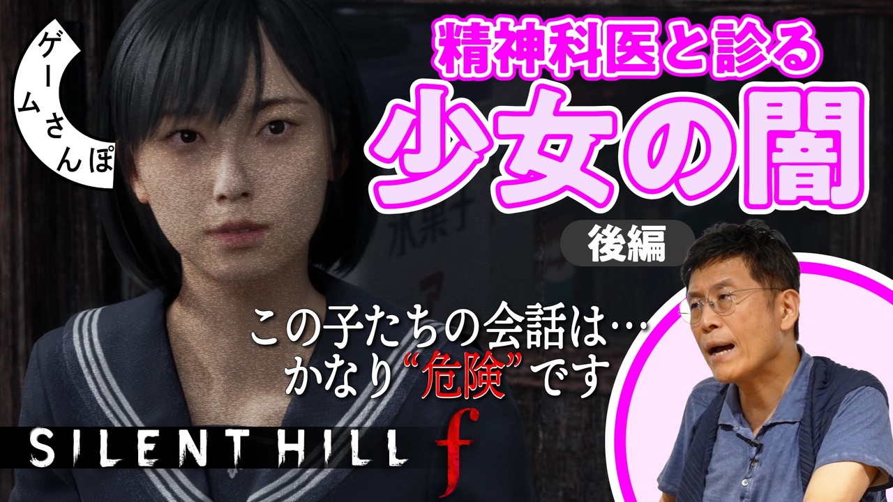 プロモーション:SILENT HILL f<br>公式サイト:<a href="https://www.konami.com/games/silenthill/f/jp/ja/" target="_blank" rel="noopener nofollow">https://www.konami.com/games/silenthill/f/jp/ja/</a><br>©Konami Digital Entertainment<br><br>▼ご購入はこちら<br><a href="https://www.konami.com/games/silenthill/f/order/" target="_blank" rel="noopener nofollow">https://www.konami.com/games/silenthill/f/order/</a><br><br>▼前編はこちら!<br><a href="https://www.nicovideo.jp/watch/so45476185" target="_blank" rel="noopener nofollow">https://www.nicovideo.jp/watch/so45476185</a><br><br>『SILENT HILL f』のゲームさんぽ、当然ゲストは精神科医・名越康文先生です!<br>「精神科医と見る『SILENT HILL 2』」シリーズが反響をいただいた中、『SILENT HILL f』もやりたいよねーって思っていたところ、お話を頂き感謝感激。今回も「提供:KONAMI」でお送りさせていただきます、ありがとうございますー!<br><br>===================================<br><br>【出演者】<br>名越康文<br>精神科医。ご自身のチャンネルでもゲーム実況たくさんやってます!↓<br>名越康文TV シークレットトーク<br><a href="https://www.youtube.com/c/nakoshiyasufumiTVsecrettalk" target="_blank" rel="noopener nofollow">https://www.youtube.com/c/nakoshiyasufumiTVsecrettalk</a><br><br>いいだ(よそ見)<br><a href="https://twitter.com/UraIida" target="_blank" rel="noopener nofollow">https://twitter.com/UraIida</a><br><br>マスダ(ゲーマー)<br><a href="https://twitter.com/game_masuda" target="_blank" rel="noopener nofollow">https://twitter.com/game_masuda</a><br><br>【制作】<br>editor:Kawanobe & Iida & Masuda<br>art direction/design:KANAISASAKI<br>op motion design:Oka Hiromu<br>op music:Hercelot<br><br>===================================<br><br><ところでゲームさんぽって...?><br>いろんな人と一緒にゲームをやって、視点の違い、もっと言えば世界の見え方の違いっぷりを楽しむ動画シリーズです。<br><br>よければ発案者である「なむ」さんのサイトにもお参りして、企画の歴史を辿ってみてね!<br><a href="https://www.saynum.com/" target="_blank" rel="noopener nofollow">https://www.saynum.com/</a>